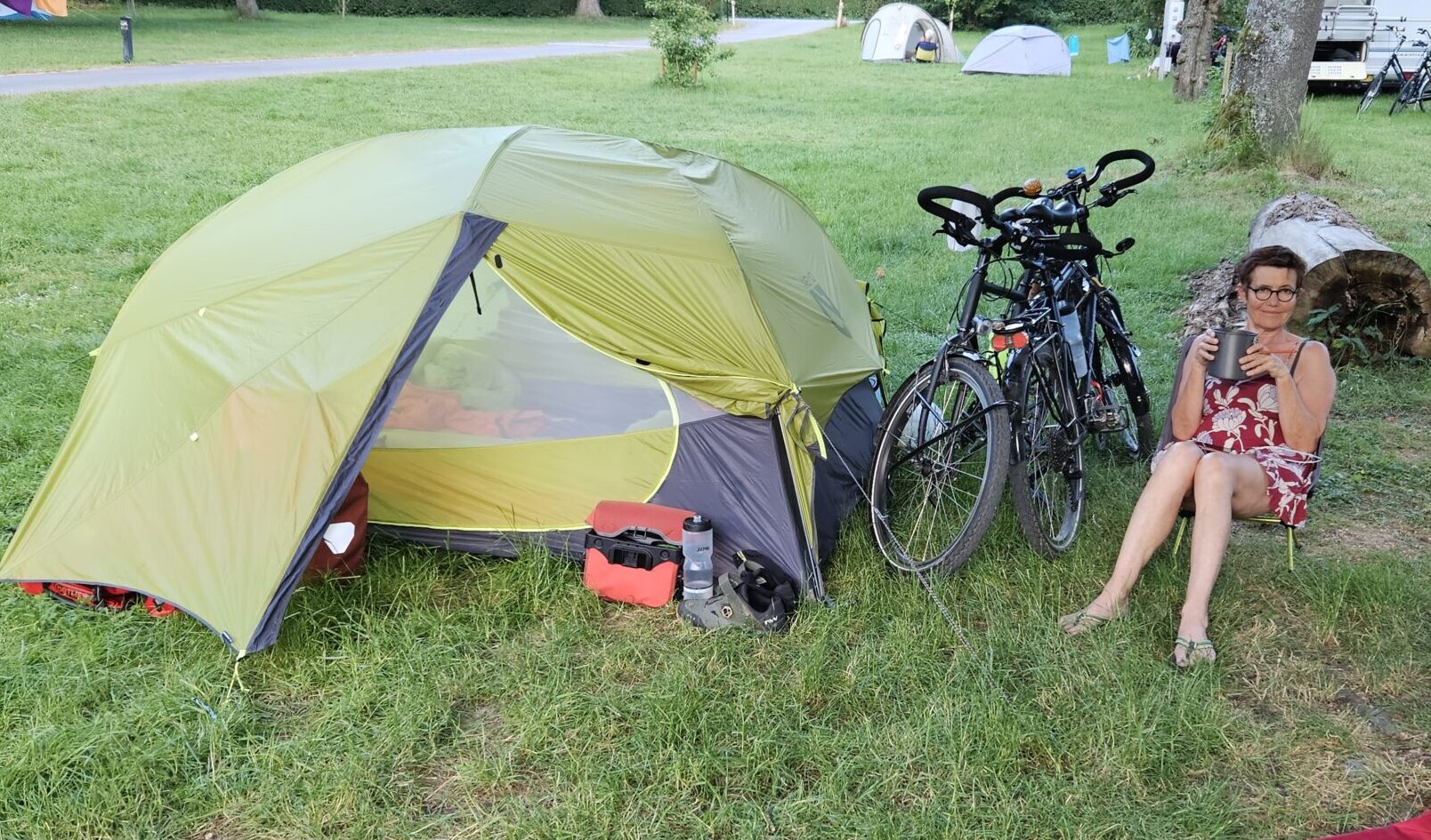 En fait, la Wallonie n’est pas si plate que ça. Dès qu’on s’écarte de la vallée de la Meuse, ça monte bien. C’est apparemment à partir de la Flandre qu’on sera vraiment dans le plat pays. Nous passons notre première nuit en Belgique dans un camping au bord de la Lesse, un affluent de la Meuse, un peu avant Dinant. On se croirait au bord de l’Ardèche, les rapides en moins. La rivière est pleine de canoës, et sur les routes, un ballet de camions pour remonter les embarcations.