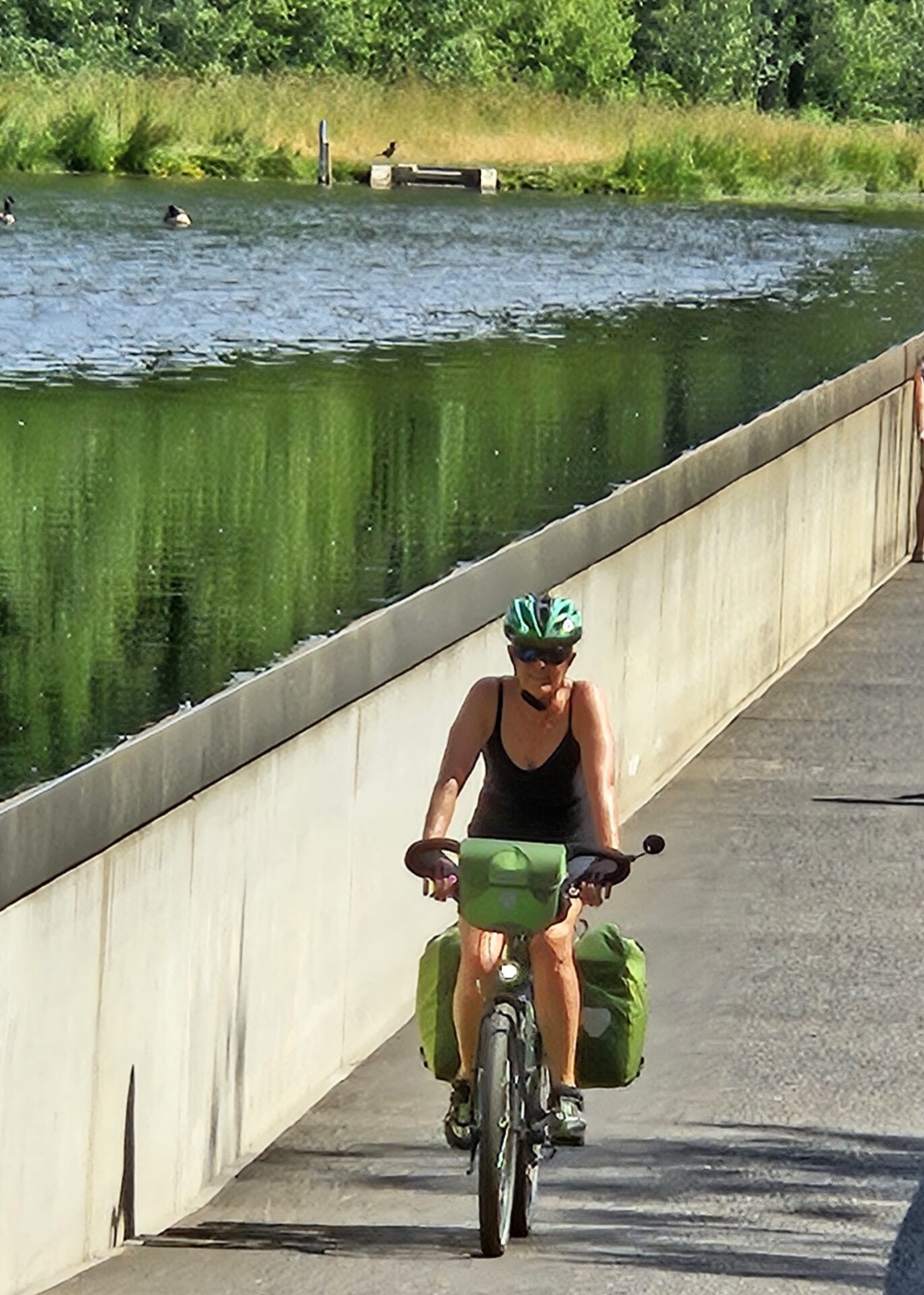 Peu après Liège, nous passons une frontière invisible, mais elle a un impact sur notre vie quotidienne. A partir de la Flandre, nous ne communiquerons plus qu’en anglais. Changement de culture aussi, dans la première ville flamande que nous traversons, une passante nous reproche de ne pas avoir garé nos vélos correctement pendant que nous achetions de quoi manger. Elle s’exprimait en flamand mais nous avons compris le sens. On va essayer de bien se tenir …