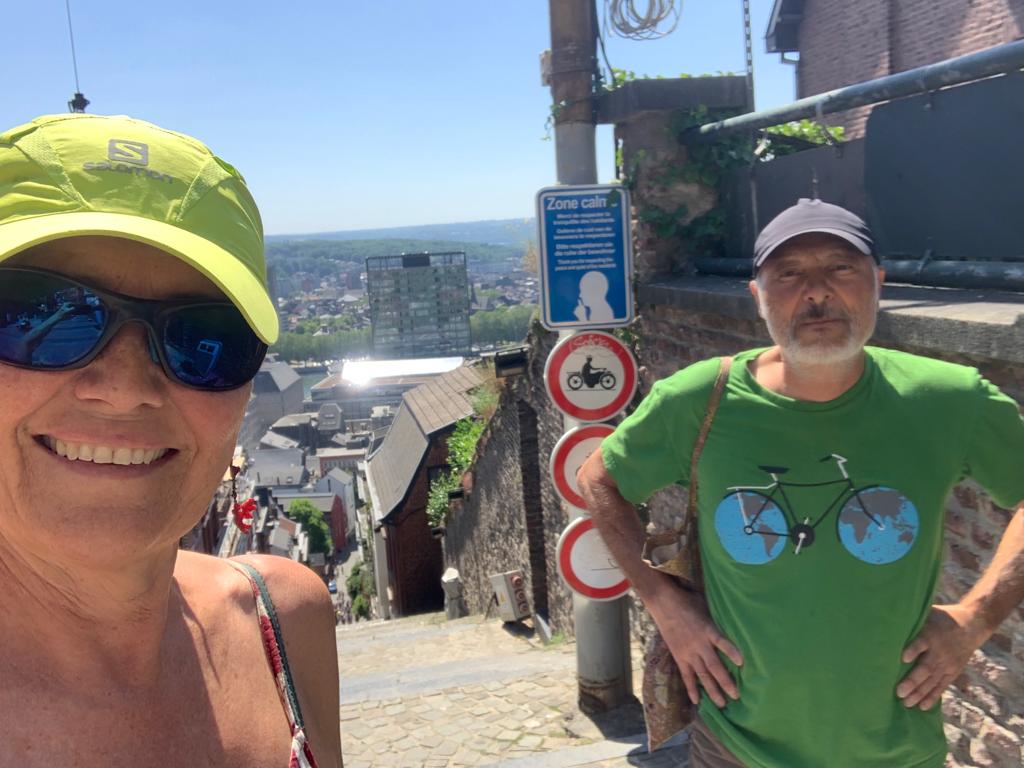 Nous faisons étape à Ahin, à côté de Huy, chez un cousin éloigné de Doum. Nous sommes très chaleureusement accueillis par Alain et Myriam dans leur belle demeure au bord de la Meuse. Nous avons droit aussi à la visite guidée de Huy, avec les commentaires historiques. A la fin de la soirée, j’en sais un peu plus sur la subtilité des relations entre wallons, flamands et hollandais.