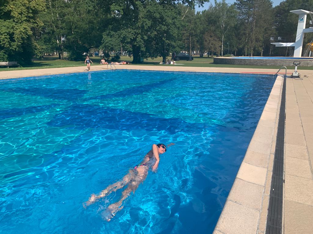 Après nos 80 km aujourd’hui, Doum n’en avait pas encore assez, elle a profité de la piscine de notre camping pour faire quelques longueurs.