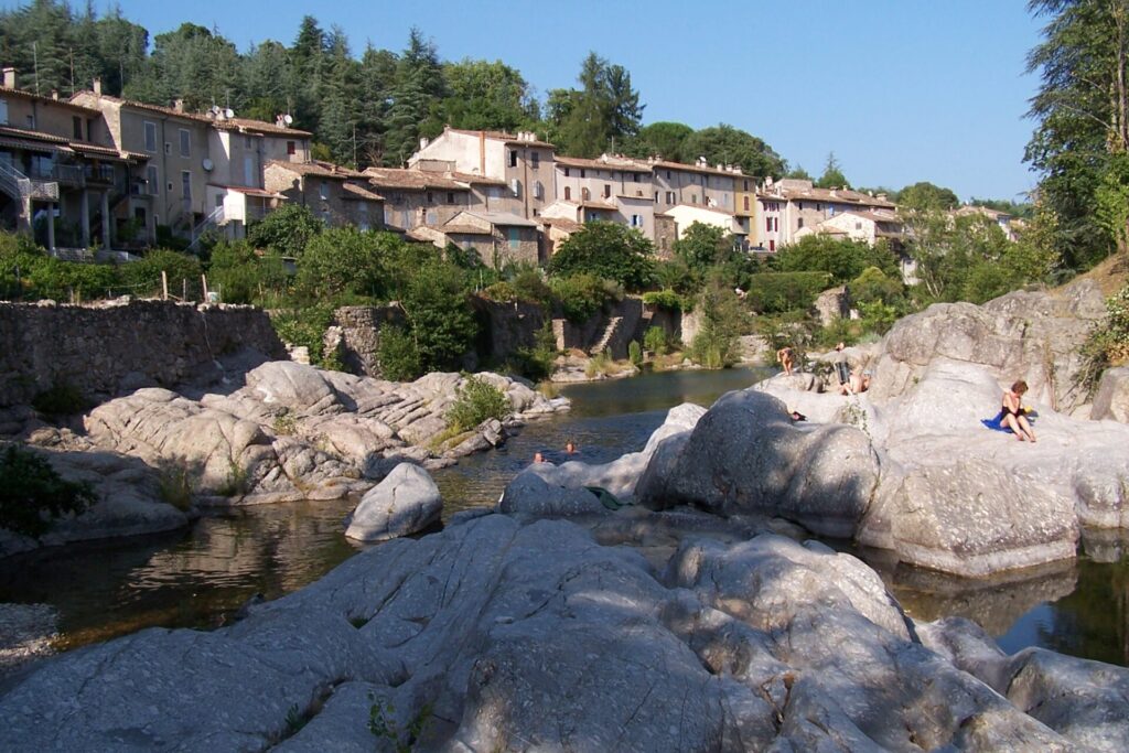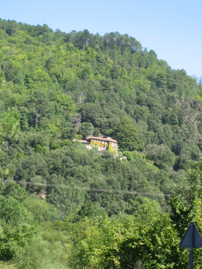 Nous partons de Lasalle où nous avons passé la nuit dans l’ancien relai de poste transformé en auberge. Nous commençons par une visite nostalgique de l’ancienne maison de famille à l’extrémité de Lassalle. Cette maison utilisée autrefois pour tisser le ver à soie avait une particularité. Sa cuisine d’été était de l’autre côté de la rue, heureusement très étroite. Donc pour servir et desservir les plats cuisinés, il fallait traverser la rue … Le jardin descendait en terrasses jusqu’à la rivière Salendrinque où on pouvait se baigner.