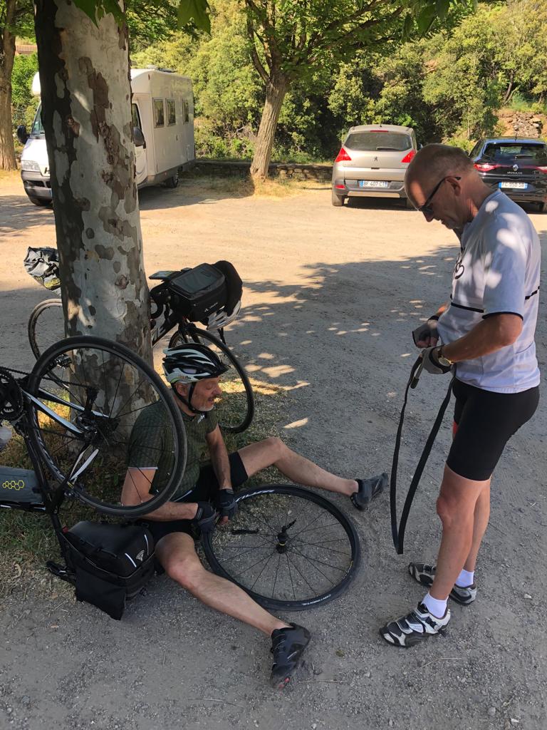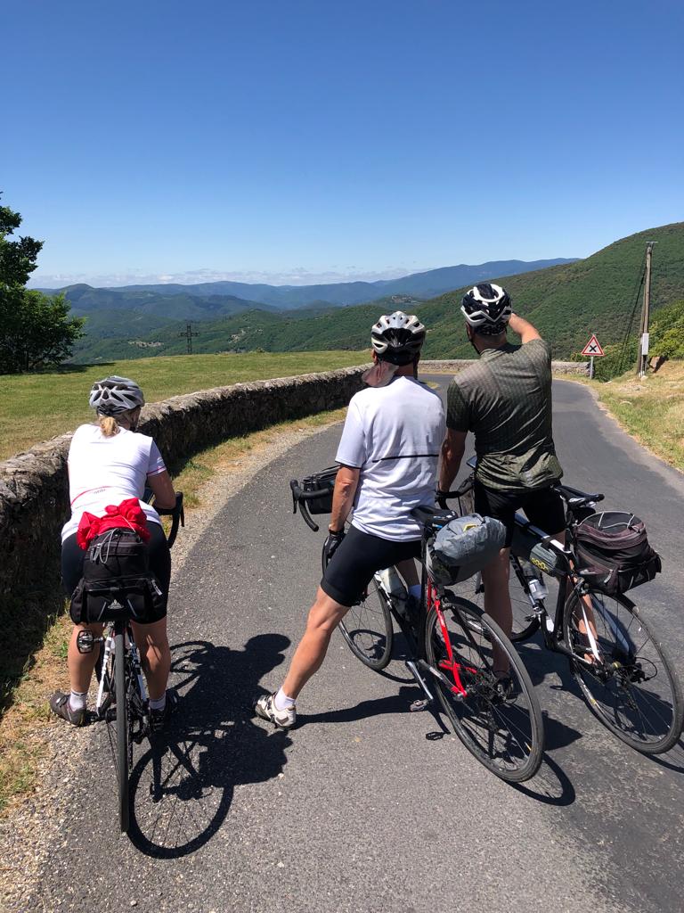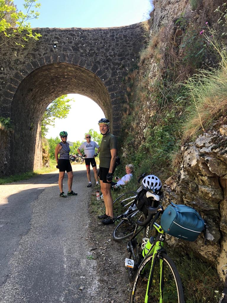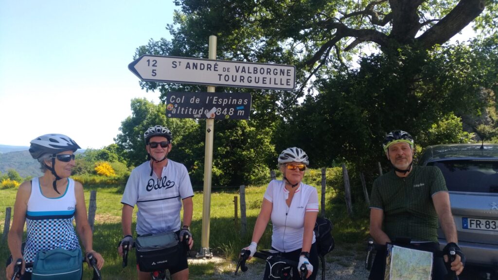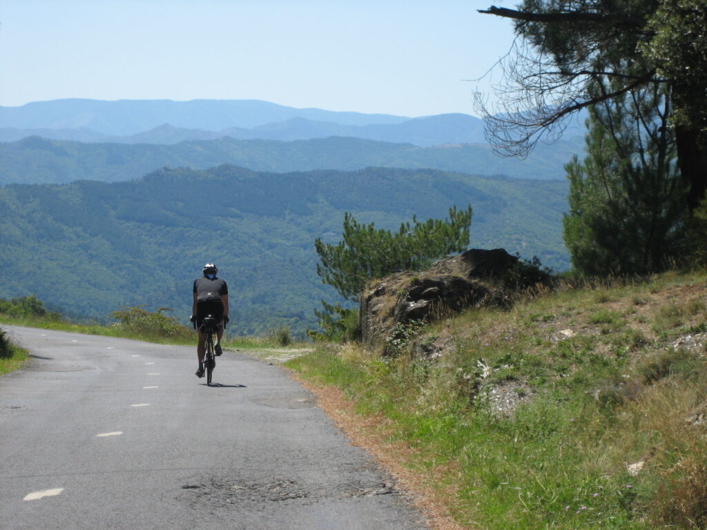 Nous attaquons vite les premiers lacets jusqu’au col à Saint Roman de Codière, et la redescente à Sumène, puis la remontée au col de la Triballe et le col de l’Asclier. On comprend vite qu’il n’y a pas de plat dans les Cévennes, ça monte ou ça descend. Nous ferons en moyenne plus de 1300 m de dénivelé par jour.