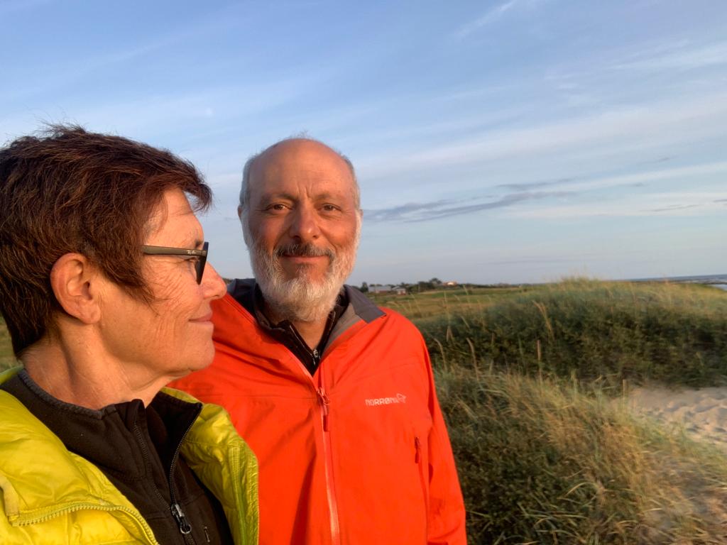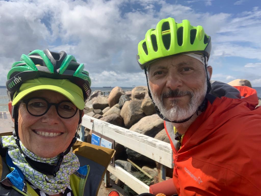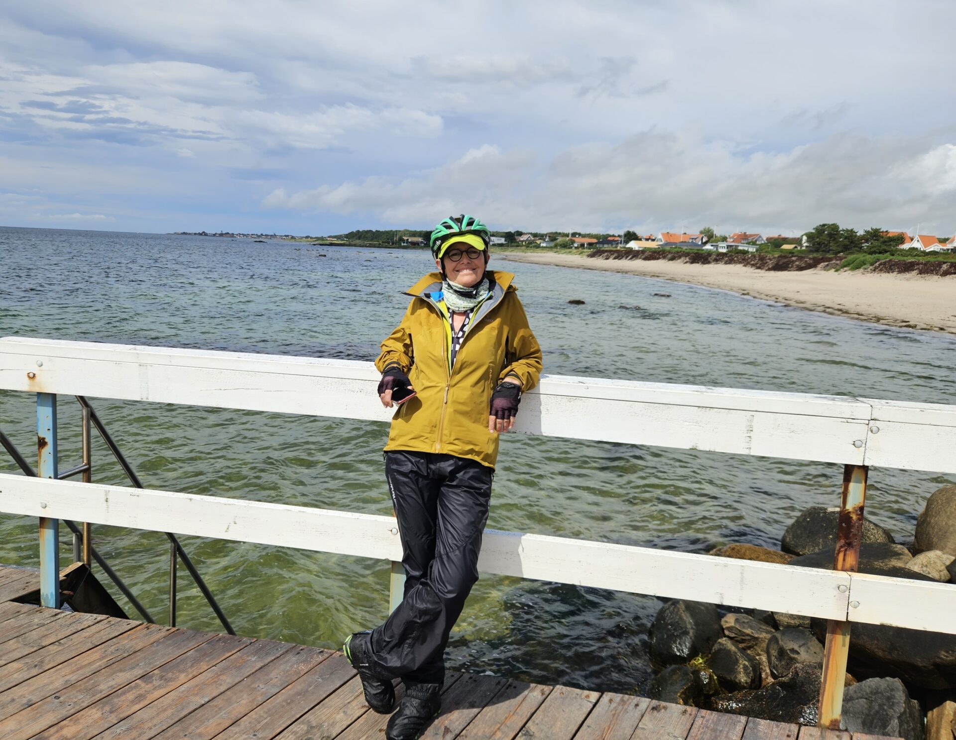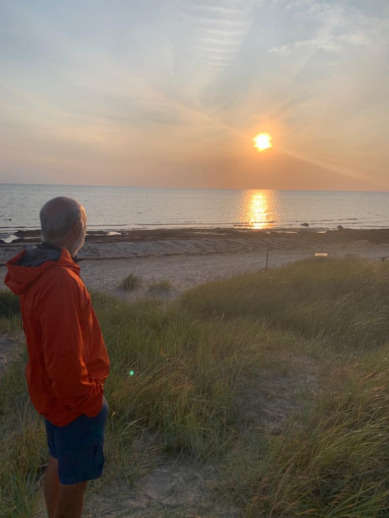 Pour le deuxième jour en Suède, nous avons droit à un petit crachin breton, et après midi, un bon soleil, même si la température reste modérée. La côte est vraiment très belle, il y a un peu de monde sur les plages, mais rien à voir avec la foule que l’on connaît chez nous en été. Et toujours le même étonnement, la plupart des vélos garés en bord de plage, n’ont pas de cadenas. Le soir, nous avons pris un petit bungalow dans un camping, car la météo reste menaçante. Je fais ma première baignade dans la mer, à ma grande surprise, elle n’est pas plus froide que l’Atlantique. Je reste un bon moment à jouer dans les vagues, sans problème. La seule chose qui diffère, c’est la couleur, elle est marron rouge et opaque, alors que de loin, c’est bien le bleu qui domine.