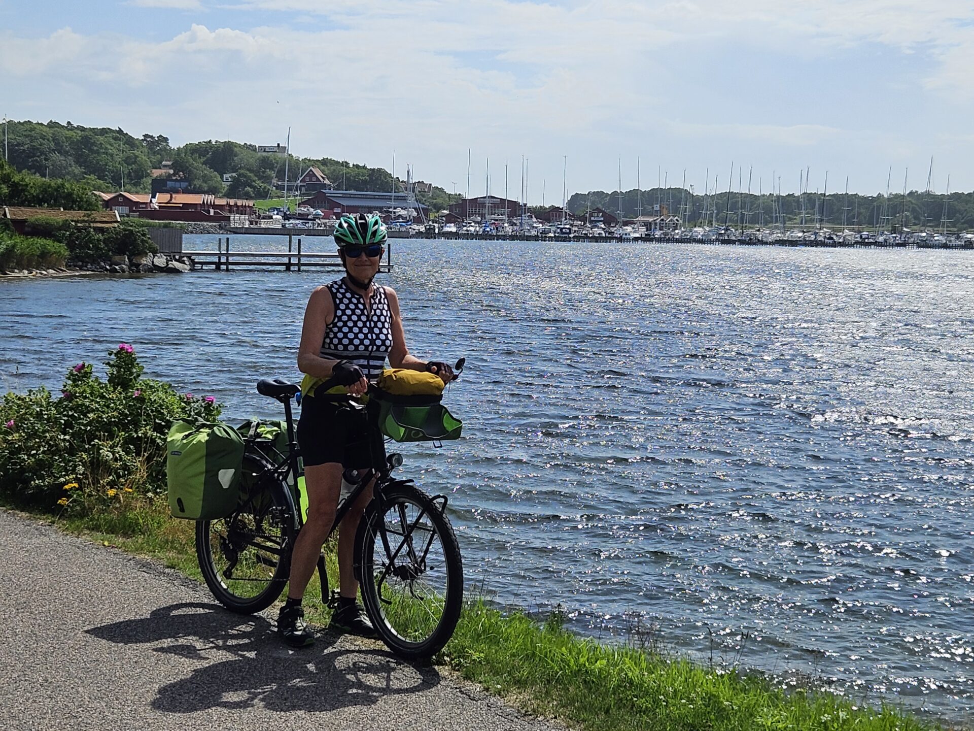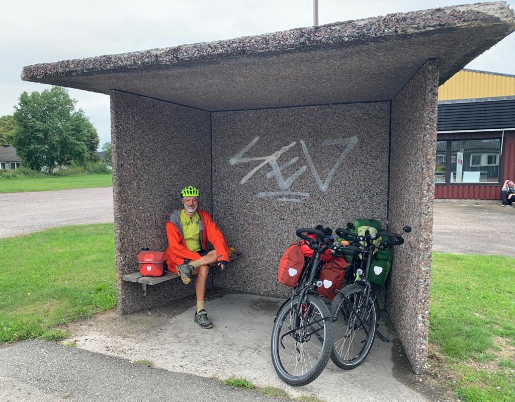 Comme prévu, il pleut lorsque nous quittons Copenhague, alors puisqu’aucune règle ne l’interdit, nous prenons le train jusqu’au départ du ferry qui relie Helsingor au Danemark, à Helsingborg en Suède. Nous économisons ainsi 40 km de pluie. La chance est plutôt avec nous, car les 35 km restants se font en grande partie au sec, et même se terminent au soleil, alors qu’ils devaient être pluvieux. Nous avons déjà un aperçu de la côte sud ouest de la Suède que nous devons remonter jusqu’en Norvège. Une succession de grandes et belles plages, ça ressemble à la Bretagne. C’est calme pour un bord de mer en été.