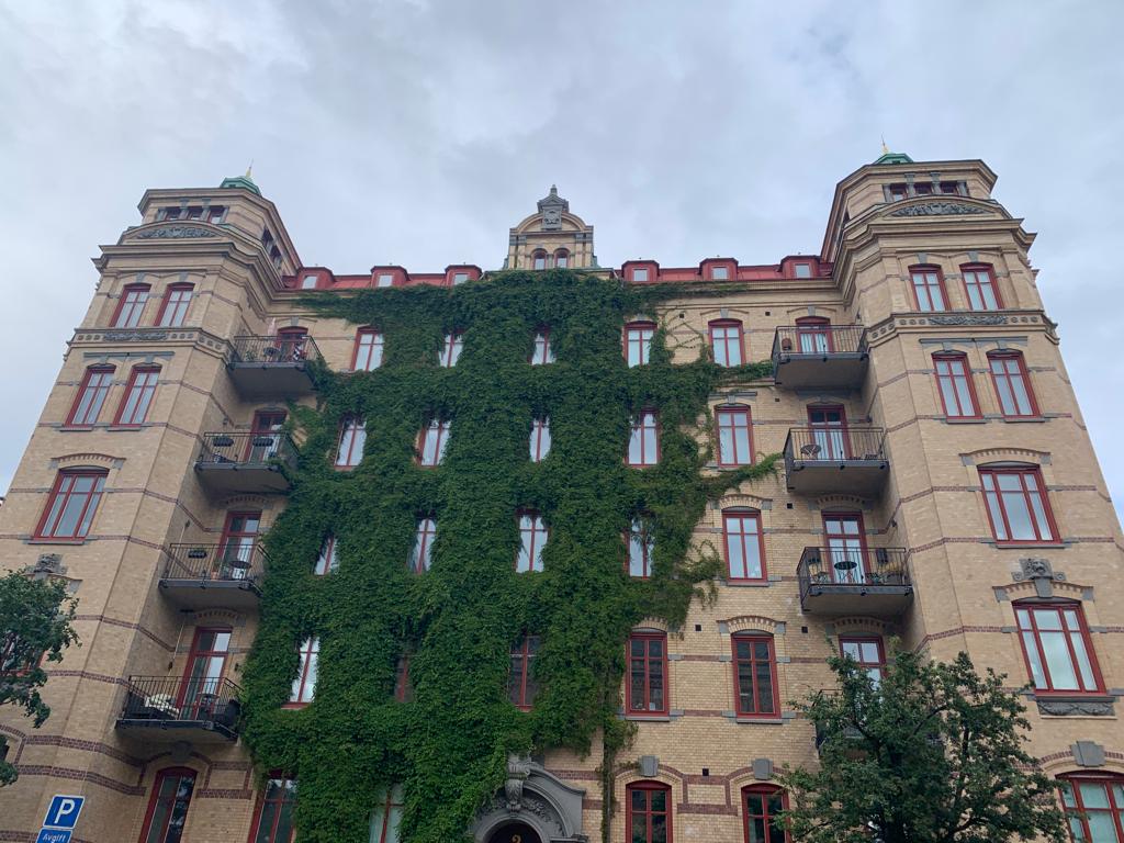 Cette nuit nous avons testé l’étanchéité de la tente avec un méga orage. Le tonnerre, les éclairs, la tempête et des rideaux d’eau. Elle a bien tenu le choc, mais le lendemain, nous sommes obligés de la plier mouillée et un peu boueuse. Vers midi, nous profitons d’une éclaircie pour la faire sécher dans un champ, l’orage est oublié. A l’approche de Göteborg, la côte change un peu de style. Elle est plus découpée, des collines rocheuses se jettent dans la mer, c’est toujours assez sauvage. Nous faisons une pause à Göteborg dans un superbe Airbnb au centre la ville. Les propriétaires de ce beau duplex partent en vacances sur une île pas loin d’ici, et nous laissent leur appartement. Par rapport au camping bondé et humide de ce matin, le contraste est saisissant. Et coup de bol, je peux voir la finale de Wimbledon sur grand écran !