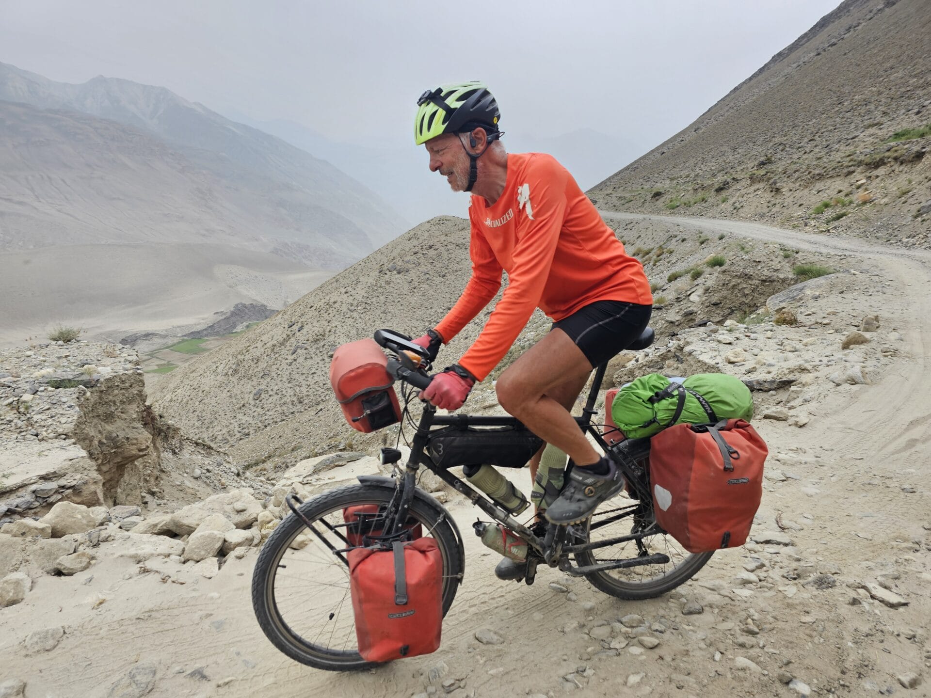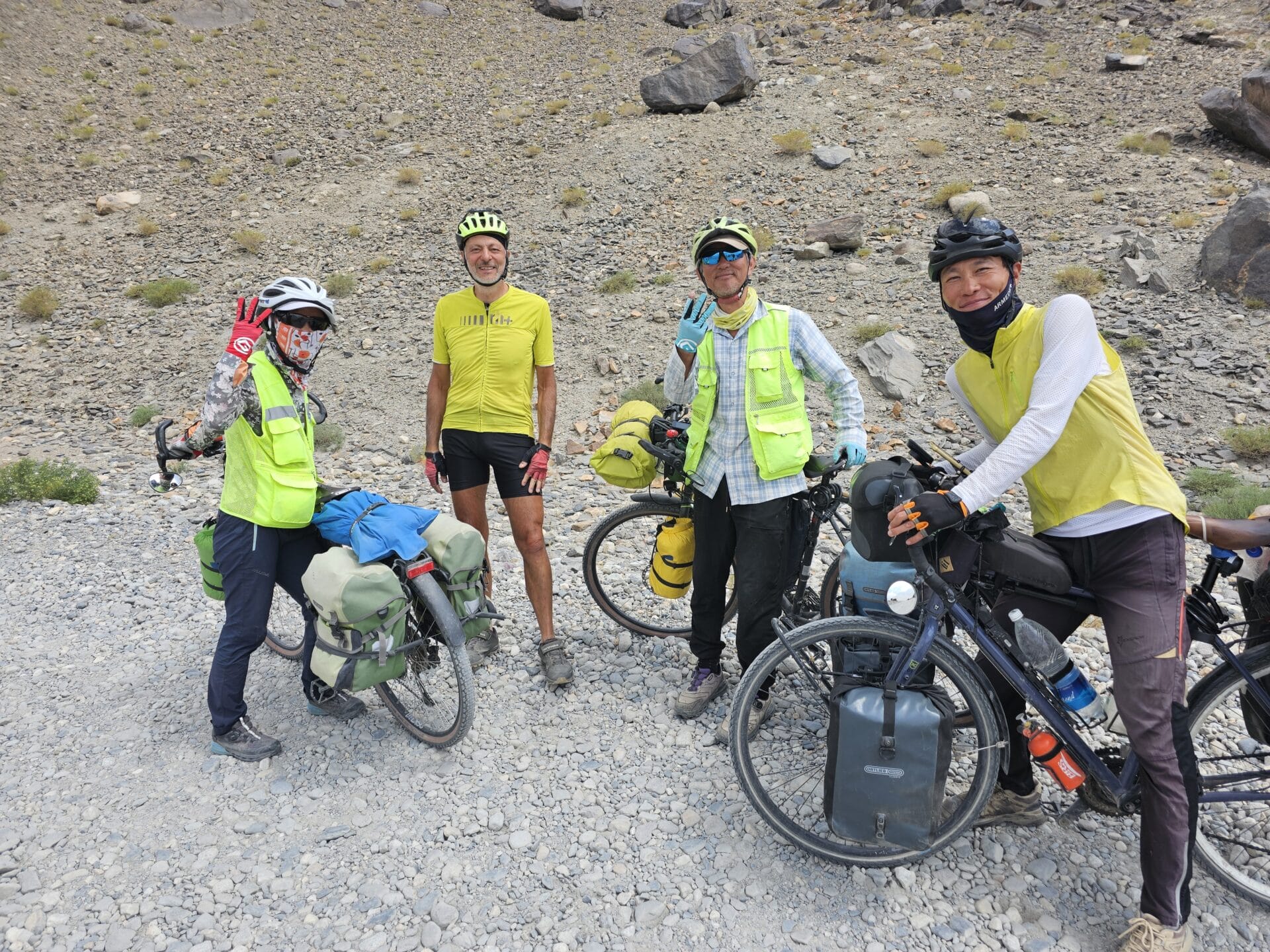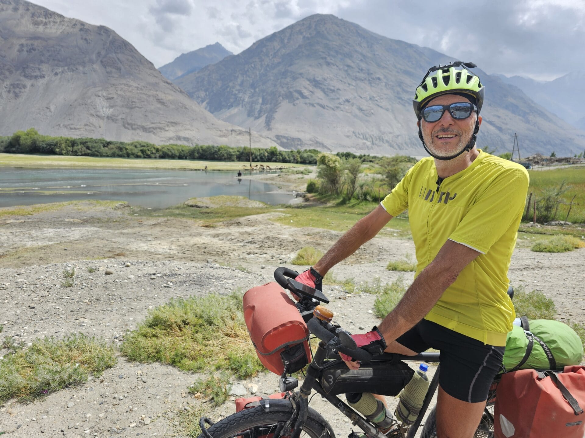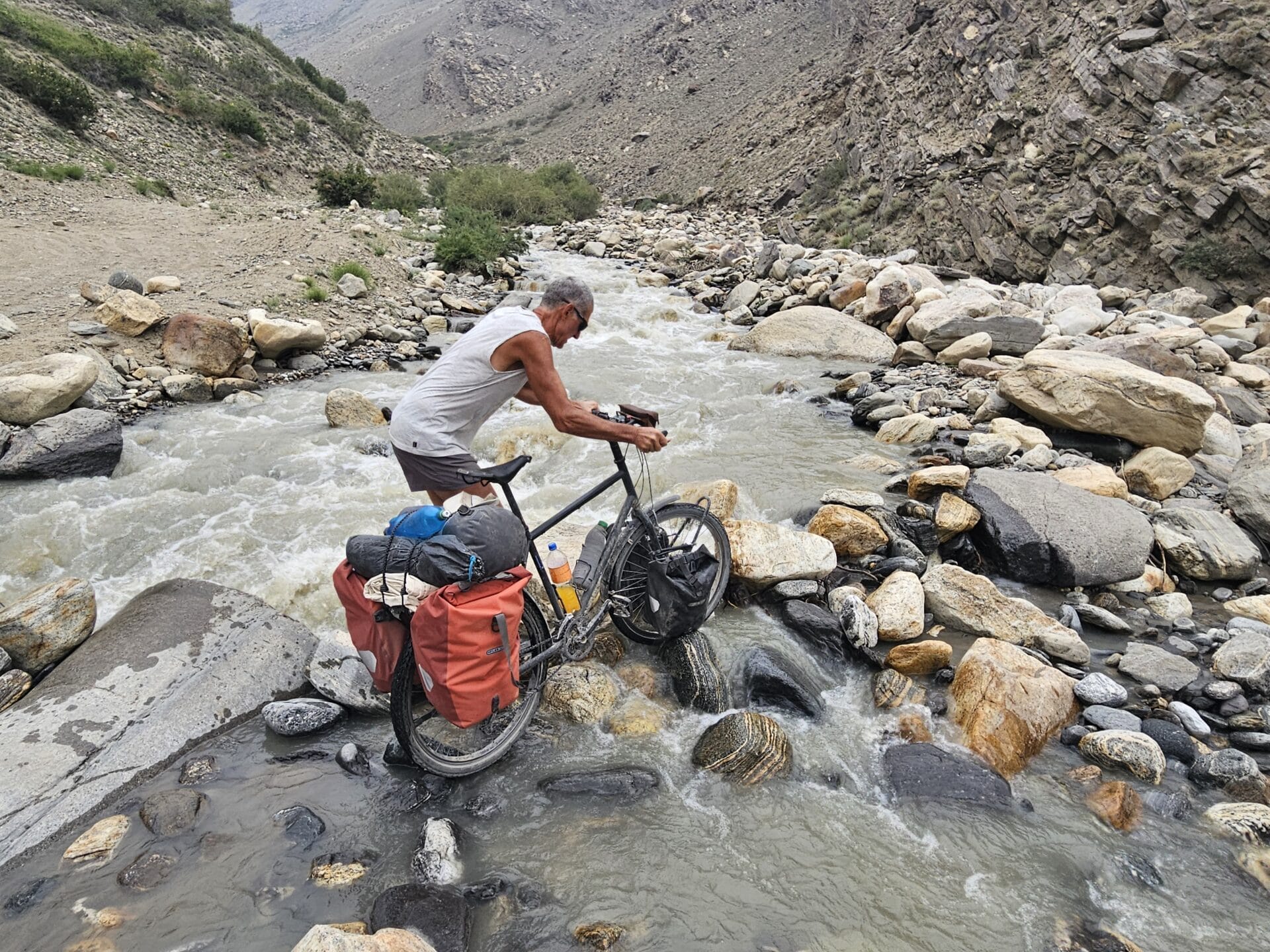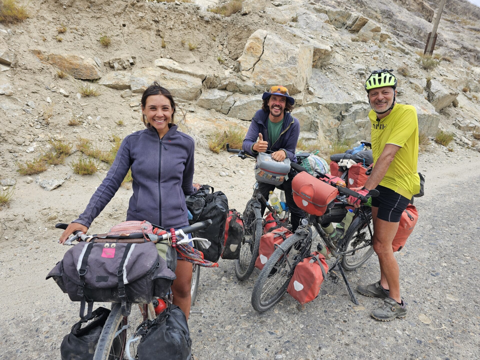 Nous avons des nouvelles de Jürgen qui nous dit que le Kargush pass est « Incredibly difficult ». Bigre, nous verrons bien sur place, et nous nous disons qu’il a des pneus trop fins pour les parties sabloneuses que nous allons trouver là-bas 😳. En attendant nous avons notre étape du jour, toujours sur une route qui alterne le bon et le moins bon. Le bon est bien en dessous des pires routes goudronnées en France. En chemin nous faisons un brin de causette avec Kazu, un cycliste japonais solitaire qui chemine en sens inverse. Nous échangeons des informations sur nos routes mutuelles à venir. Il est très enthousiaste, et c’est marrant nous avons le même age, du coup il me serre la main. J’adore ces rencontres improbables au milieu de nulle part. Notre étape se termine à Iskoshim dans une homestay grand luxe, avec douche, WC, et WiFi.