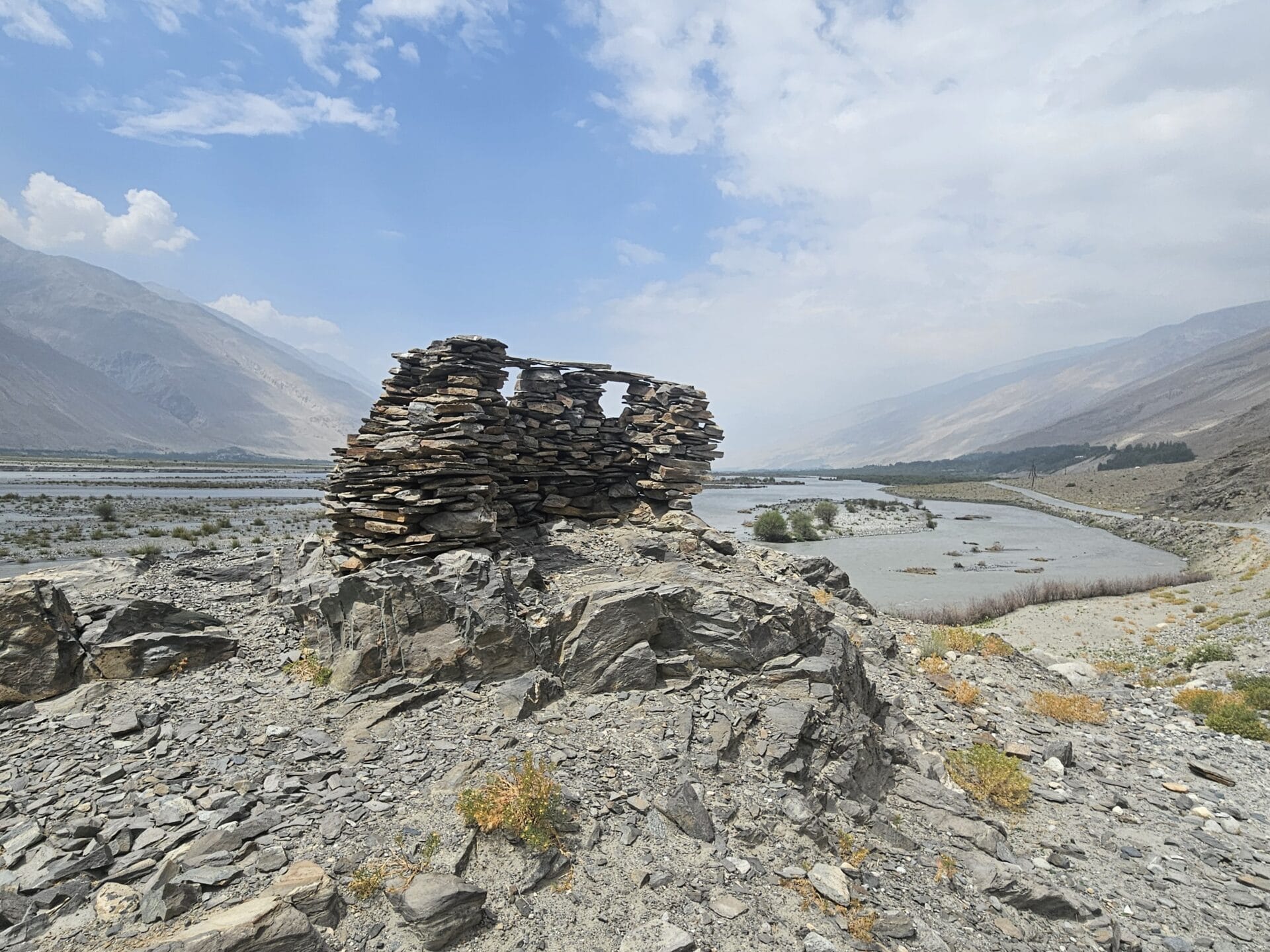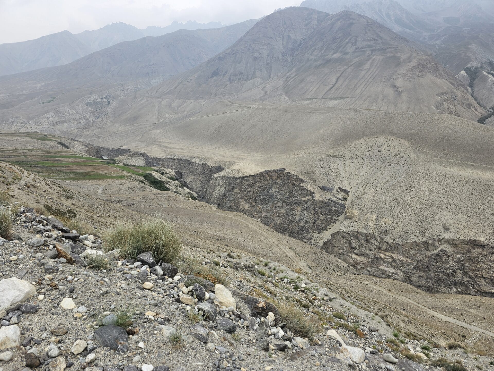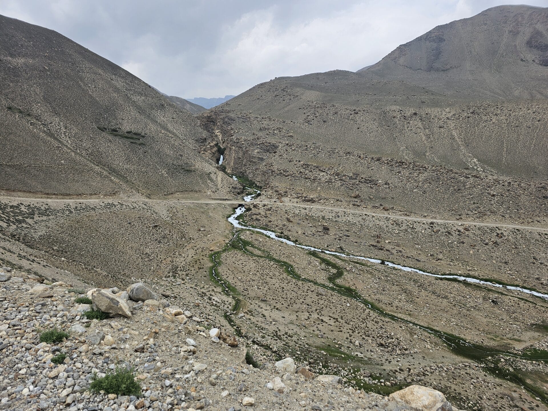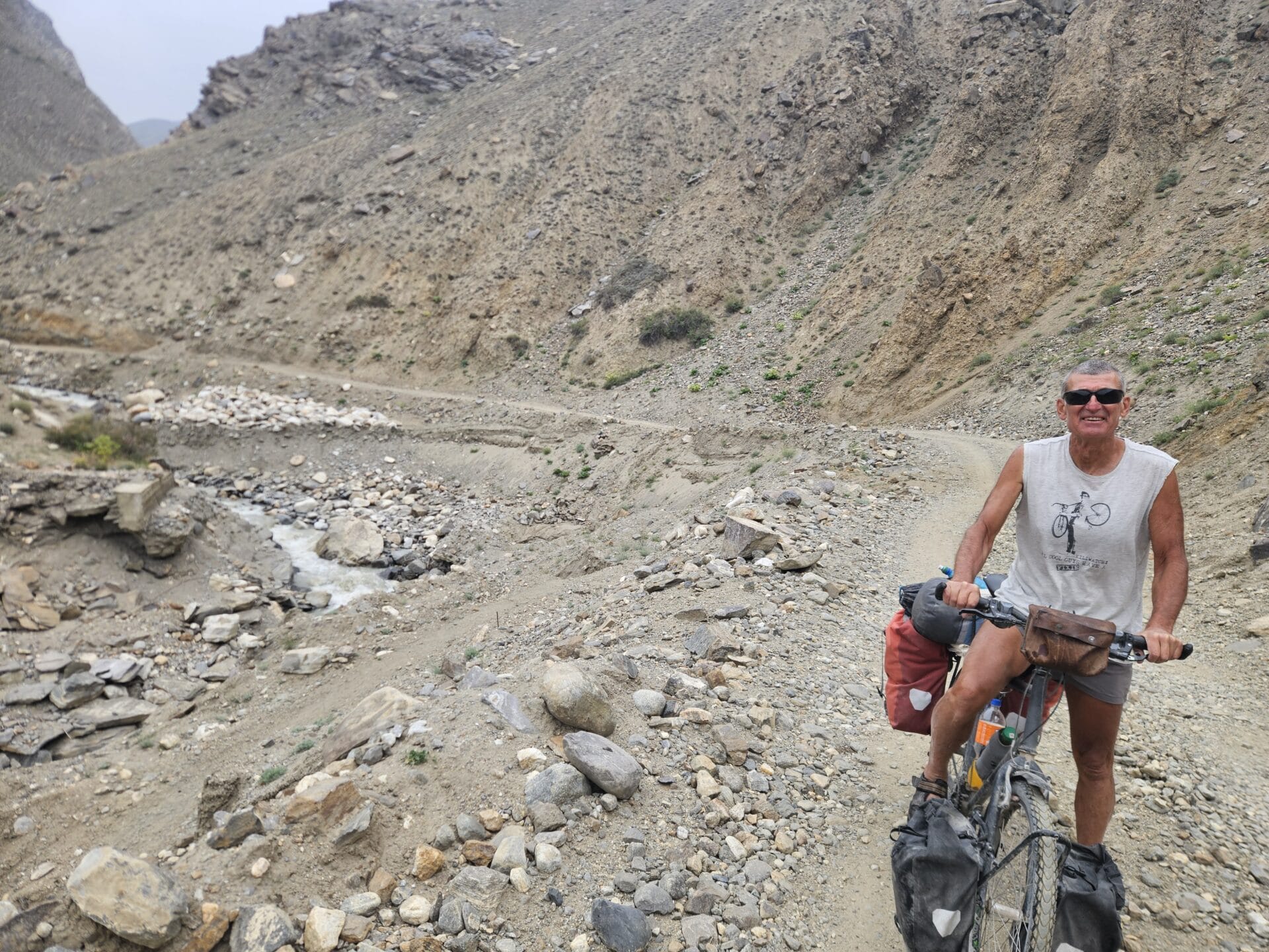 Nous avons des nouvelles de Jürgen qui nous dit que le Kargush pass est « Incredibly difficult ». Bigre, nous verrons bien sur place, et nous nous disons qu’il a des pneus trop fins pour les parties sabloneuses que nous allons trouver là-bas 😳. En attendant nous avons notre étape du jour, toujours sur une route qui alterne le bon et le moins bon. Le bon est bien en dessous des pires routes goudronnées en France. En chemin nous faisons un brin de causette avec Kazu, un cycliste japonais solitaire qui chemine en sens inverse. Nous échangeons des informations sur nos routes mutuelles à venir. Il est très enthousiaste, et c’est marrant nous avons le même age, du coup il me serre la main. J’adore ces rencontres improbables au milieu de nulle part. Notre étape se termine à Iskoshim dans une homestay grand luxe, avec douche, WC, et WiFi.
