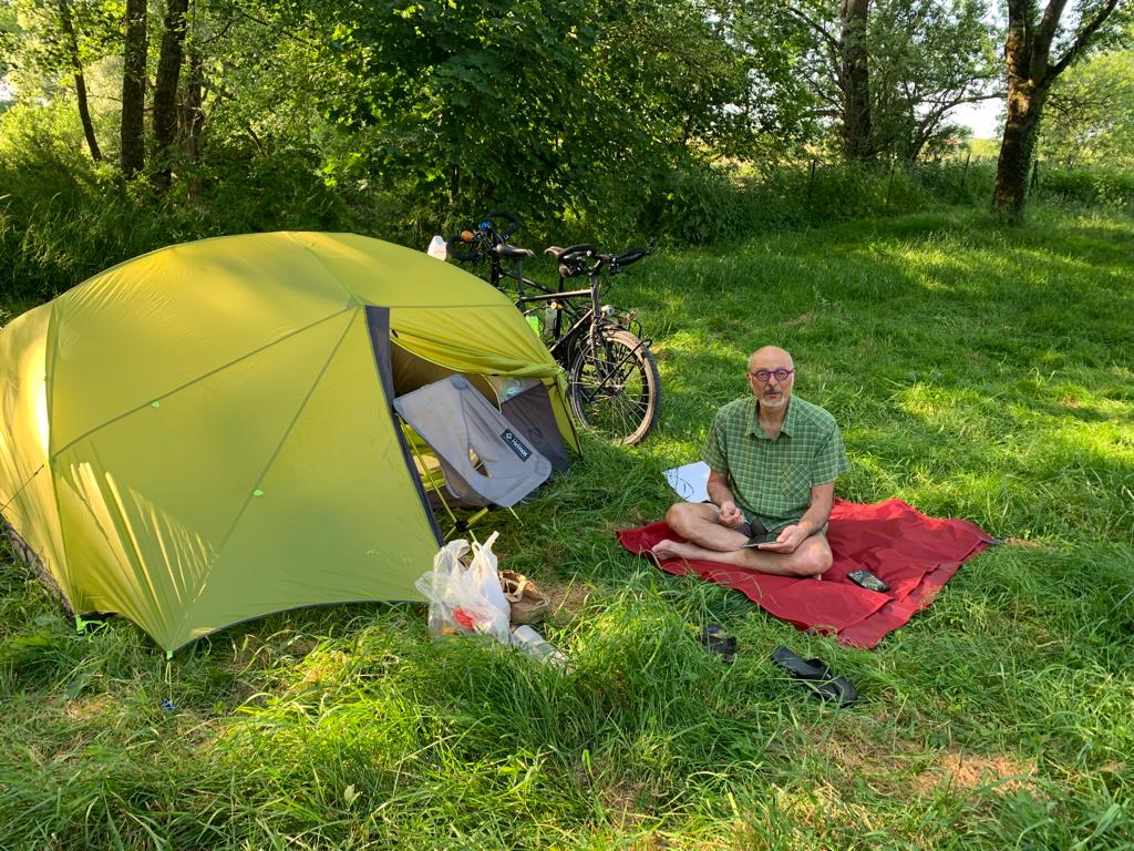 Ce soir nous campons. Le seul Warmshower à des kilomètres à la ronde n’a pas répondu. Nous allons tester le matériel que nous trimballons depuis quelques jours, dans le charmant camping municipal du Trou d’Argot à Montigny sur Vingeanne. Nous sommes seuls.