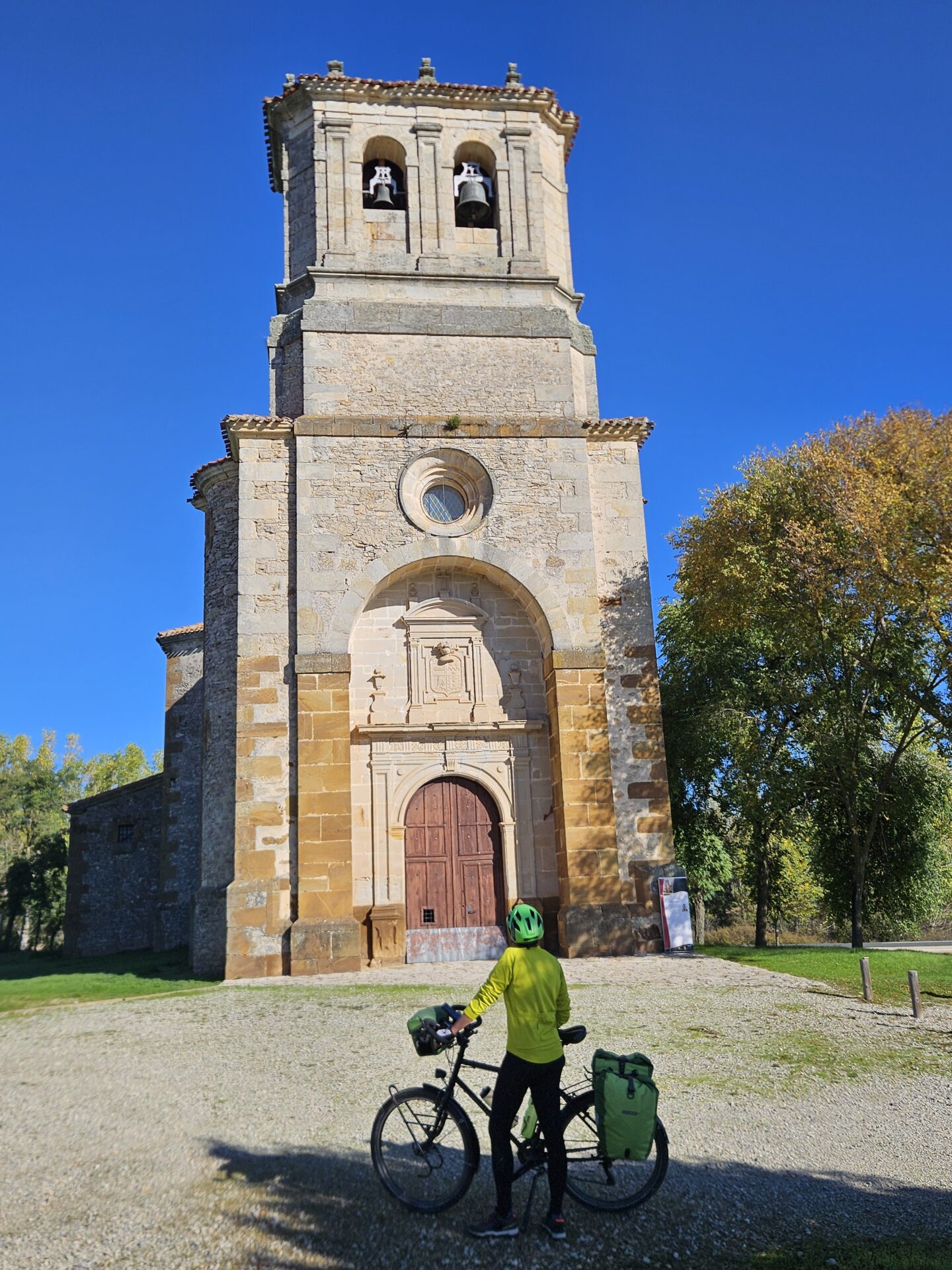 Nous nous dirigeons ensuite vers Valladolid, où nous ferons une journée de repos après six jours de pédalage, une première pour ce genou en titane. Nous naviguons sur un plateau avec de belles couleurs. Et c’est plutôt en descente sur deux jours. Nous faisons des moyennes affolantes avec nos poids lourds, 21 km/h sur plus de 80 km, du jamais vu !