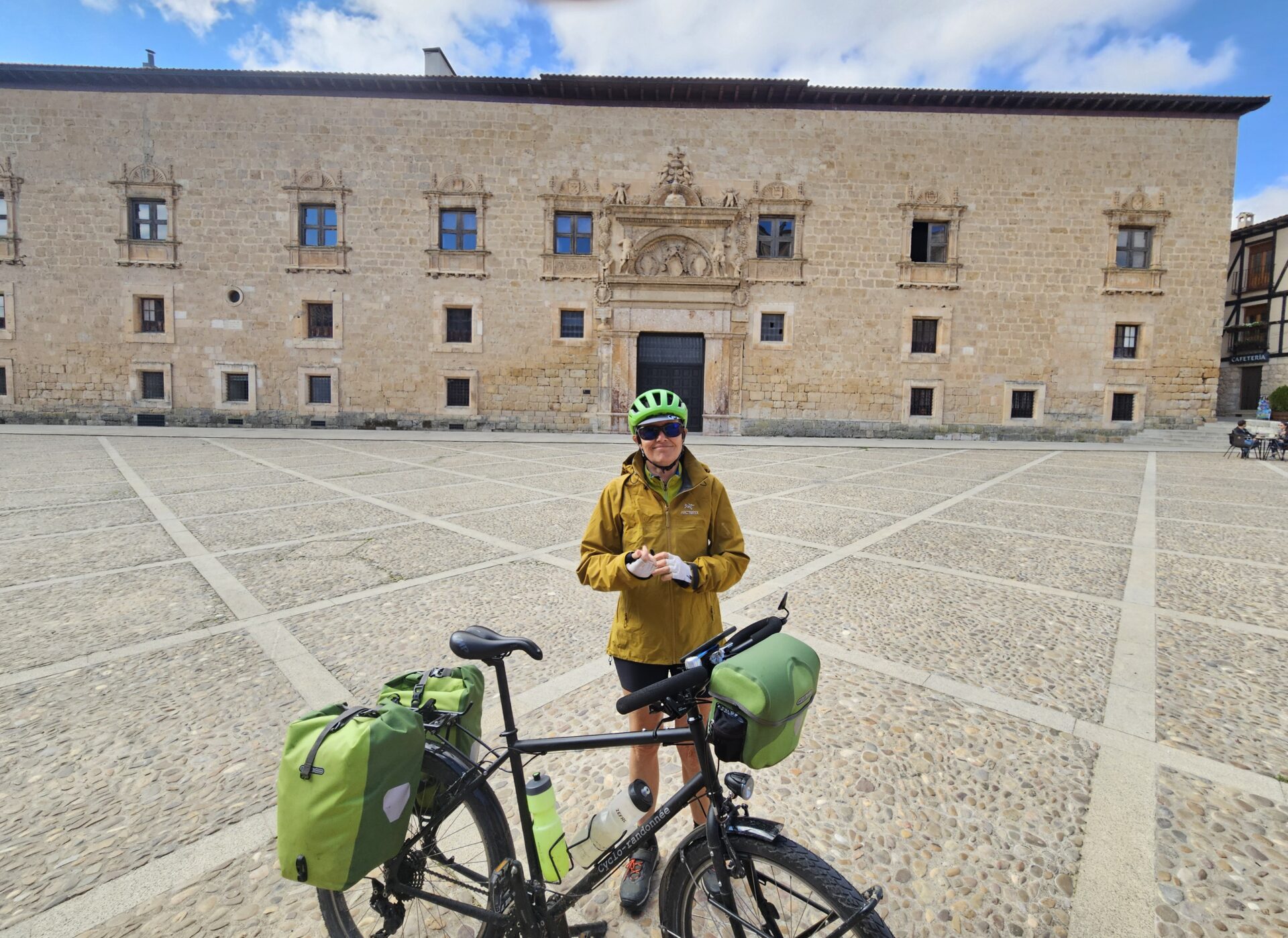 Nous sommes maintenant à Valladolid dans une sorte de pension de famille au centre de la ville. En fait les locations avec parties communes sont beaucoup moins chères que les autres. Nous tombons sur de très beaux appartements et à cette époque il n’y a que nous. Juste un petit problème cette fois, il faut monter les vélos dans l’appartement, au quatrième sans ascenseur. Valladolid est une ville étudiante, assez belle et très vivante. Nous visitons des palais au gré de nos déambulations, on entre à tout hasard. C’est comme ça que nous visitons le rectorat et la faculté de droit, sans trop savoir si c’est autorisé, mais c’est très beau.