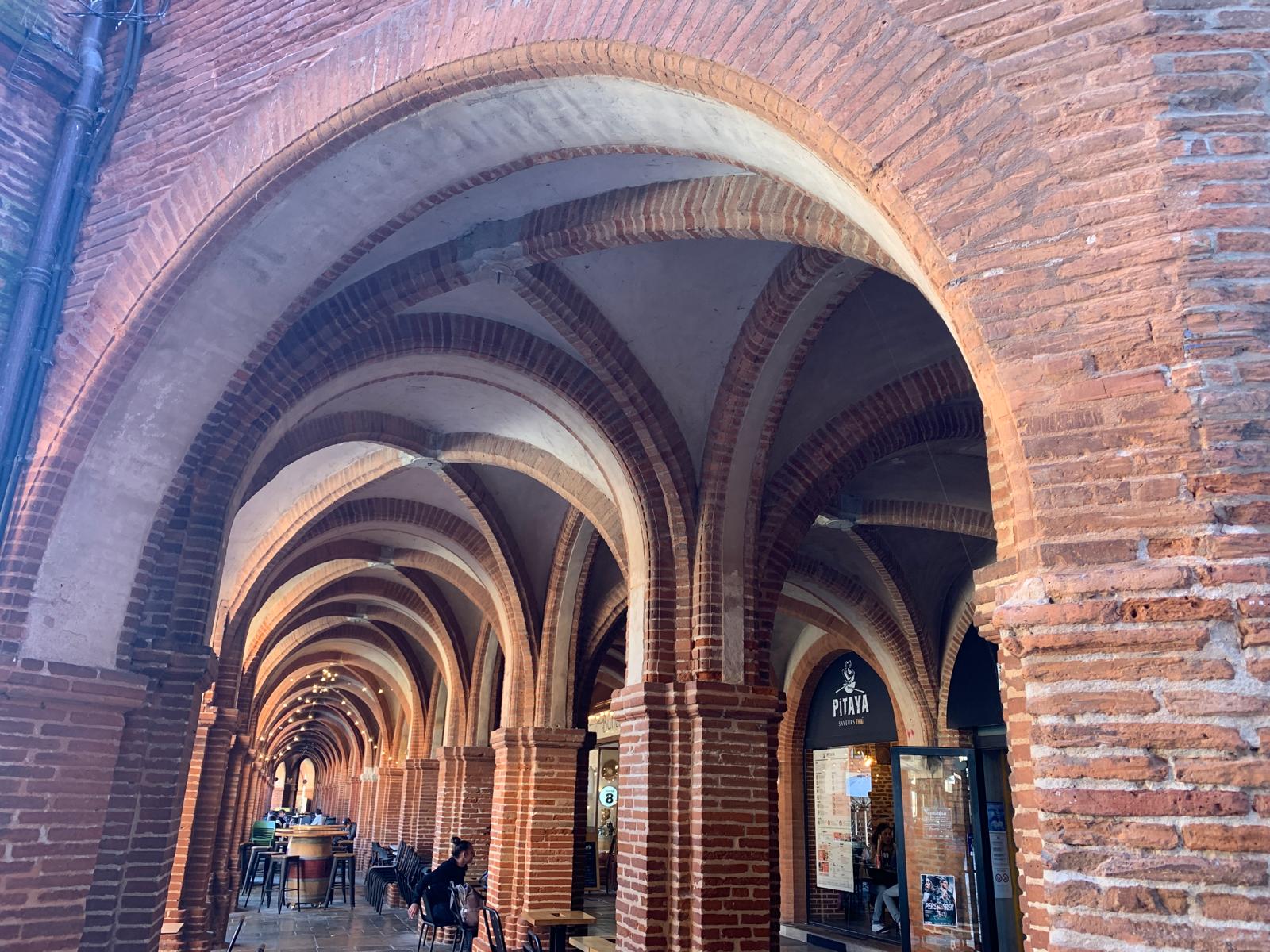 Prochaine étape, Montauban, nous passons dans le Tarn, et on redescend en altitude. Enfin il fait bon ! Nous finissons jambes et bras nus, et nous pouvons pique-niquer en prenant notre temps. Le paysage et le style des maisons changent, elles sont maintenant en briques rouges comme à Toulouse, qui n’est pas loin.
