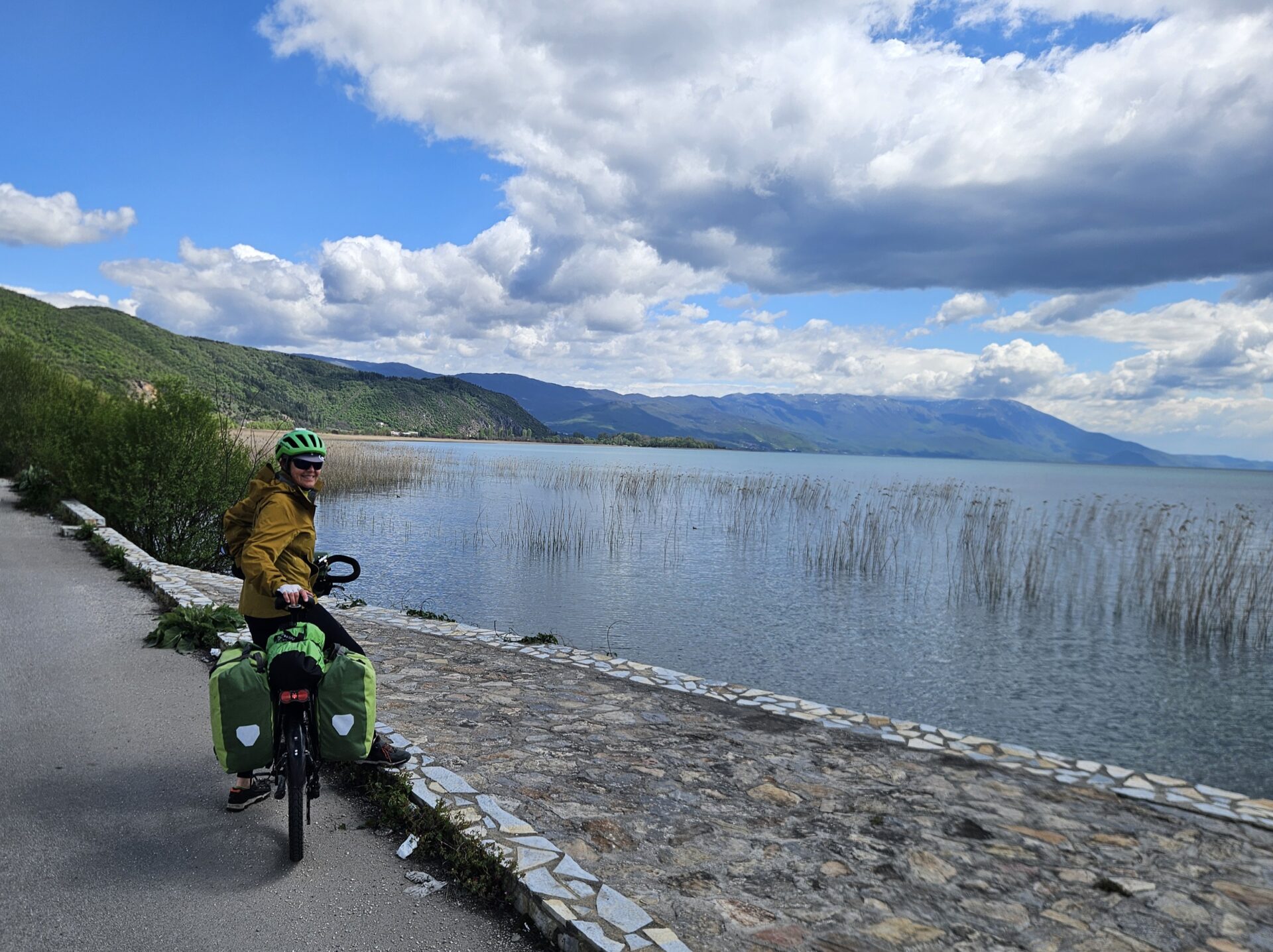 OK je note pour les prochains articles. En attendant quelques réponses : Pour l’instant on se régale, car c’est plutôt varié. Nous faisons gaffe à ne pas faire d’étapes trop dures car le chemin est encore long, mais surtout, la forme vient petit à petit, et nous faisons facilement maintenant des étapes équivalentes à celles des alpes, qui nous avaient un peu entamés. Un petit bémol, nous ne faisons pas beaucoup de rencontres car, pas de warmshowers et pas de bivouac ou camping chez l’habitant. En fait jusqu’à très récemment les soirées et les nuits étaient très fraiches, la météo souvent pessimiste. Donc plutôt des locs d’appartement d’autant que c’est souvent très peu cher, autour de 30 €. En Grèce il a l’air de faire plus chaud, on devrait commencer à camper. Pour finir, grâce aux voyages précédents on est plutôt au point avec l’équipement, jusque là, on n’à rien oublié et rien de superflu, on a tout utilisé.