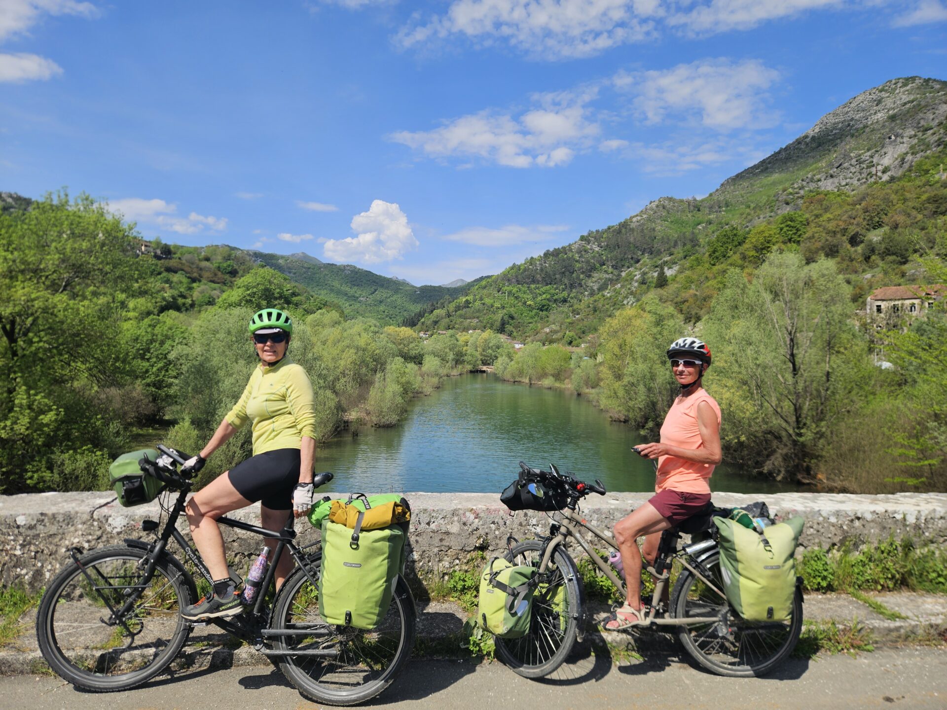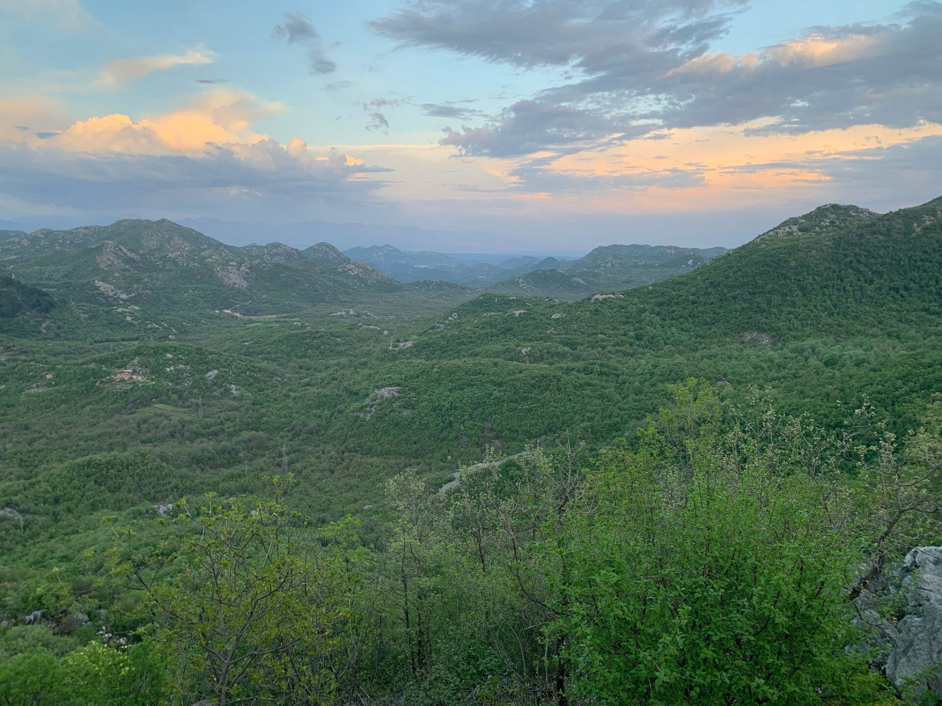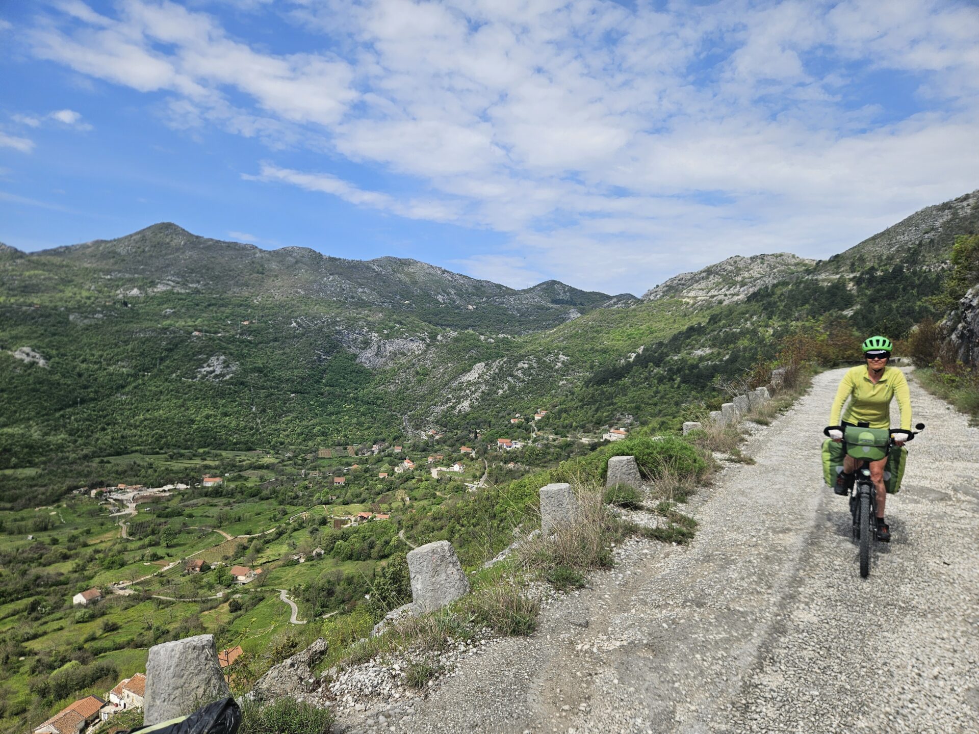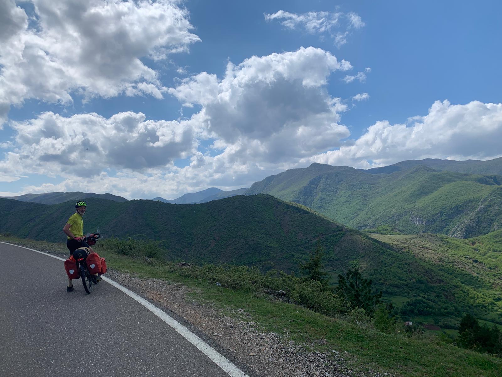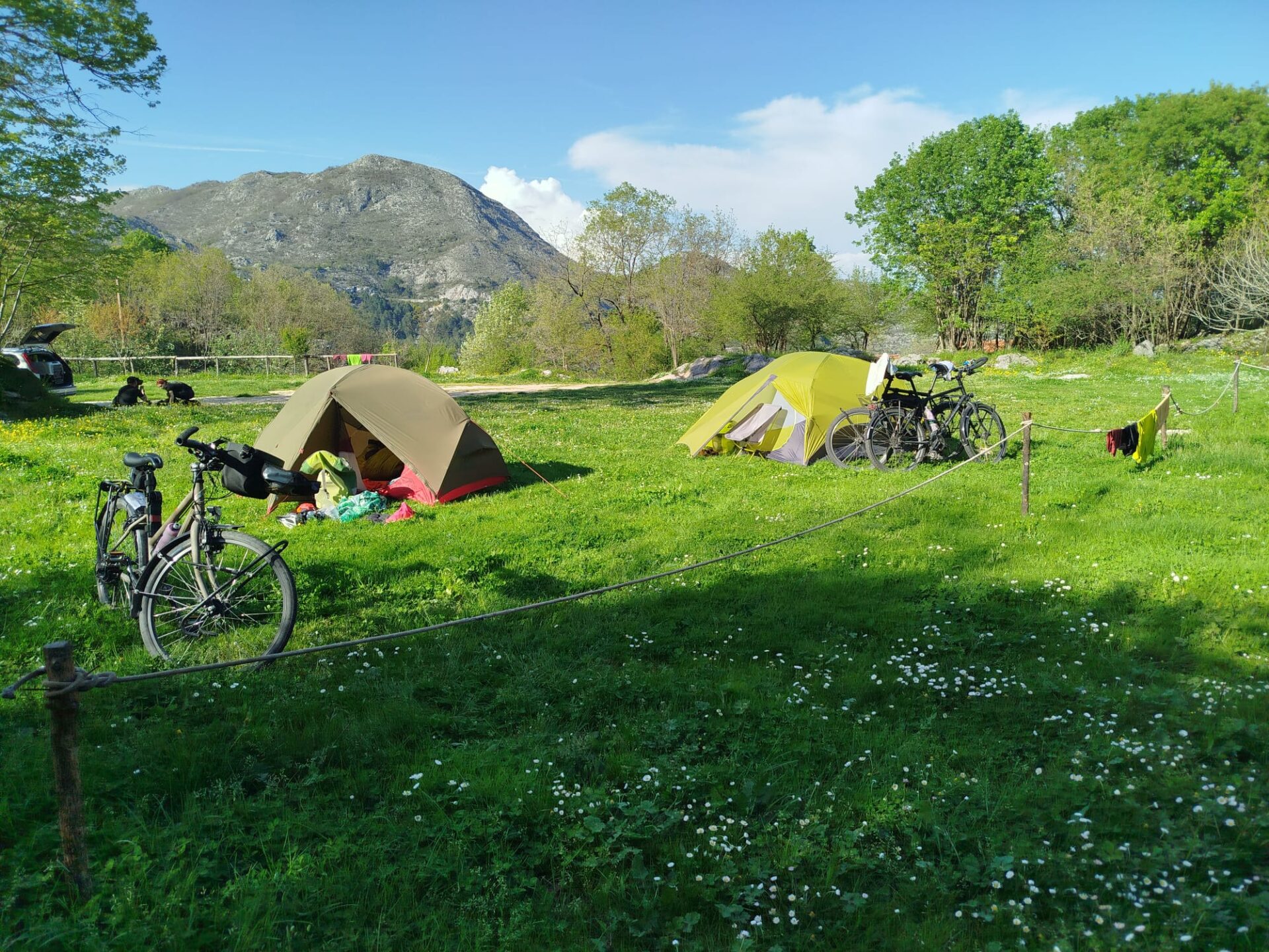 La route serpentine offre une vue incroyable sur la baie, c’est une petite route à la pente régulière, entre 4 et 5%, la température est idéale, elle passe comme une lettre à la poste ! Après nous rentrons plus au coeur du Monténégro pour atterrir dans un chouette petit camping au milieu de nulle part.