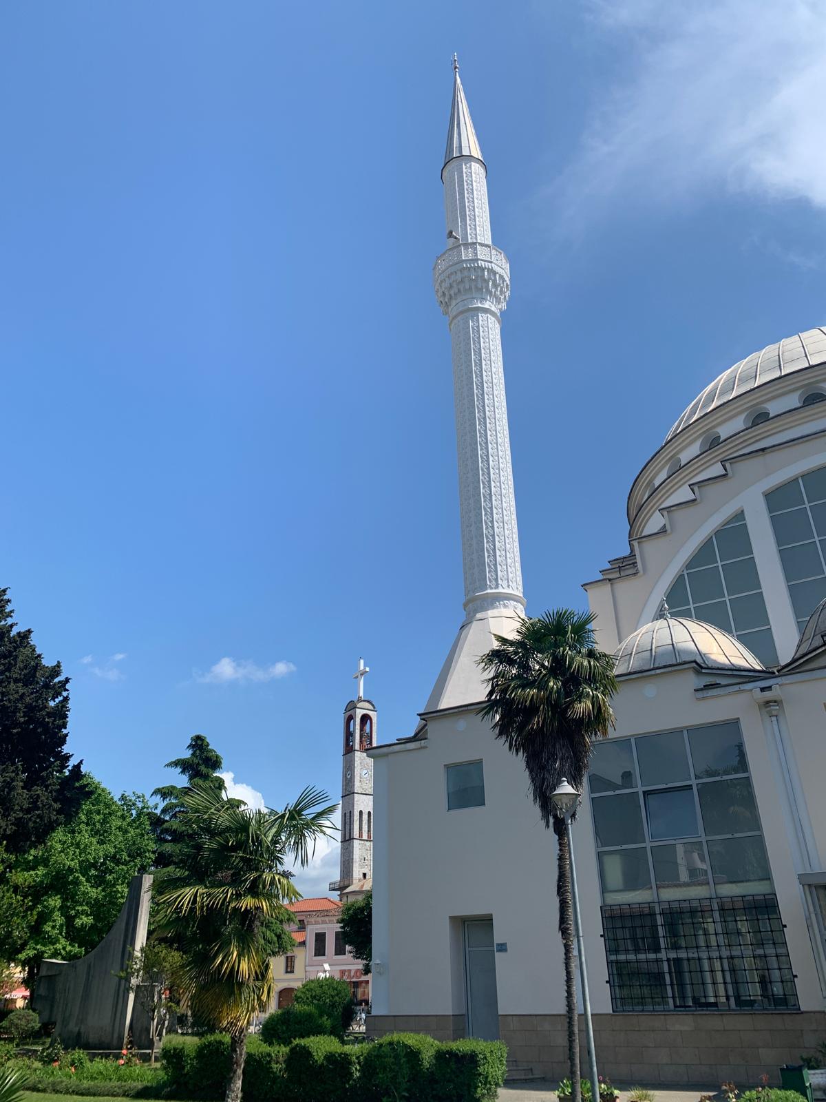 Le pays est à 60% musulman, le reste catholique, orthodoxe et d’autres religions. Anne-Marie a entendu le chant du Muezzin ce matin. Par contre nous voyons très peu de femmes voilées dans la rue, il faut noter que les chrétiens sont présents en majorité dans le nord, où nous nous trouvons. Shkoder est une petite ville, il n’y a pas beaucoup de choses à voir, mais nous prenons le pouls de ce pays un peu différent et nous en profitons pour bien nous reposer. Le soir nous trouvons un restaurant de spécialités albanaises, nous nous régalons de poivron farci, salade grecque, ragoût de légume, riz au fromage pour onze euros en tout !