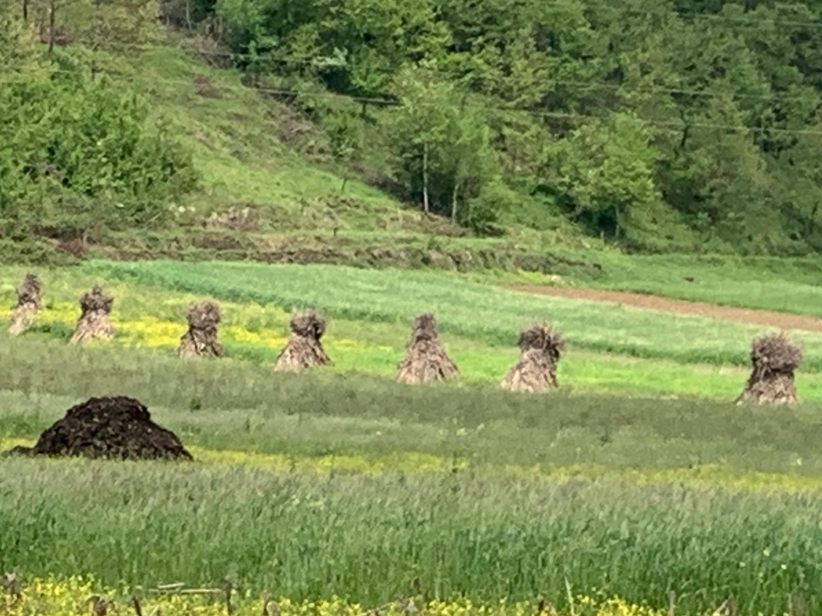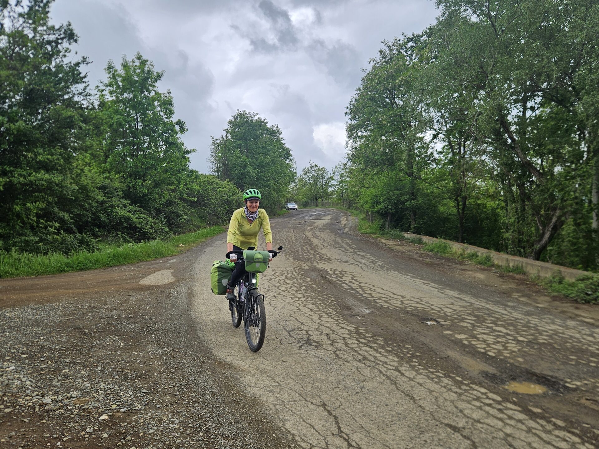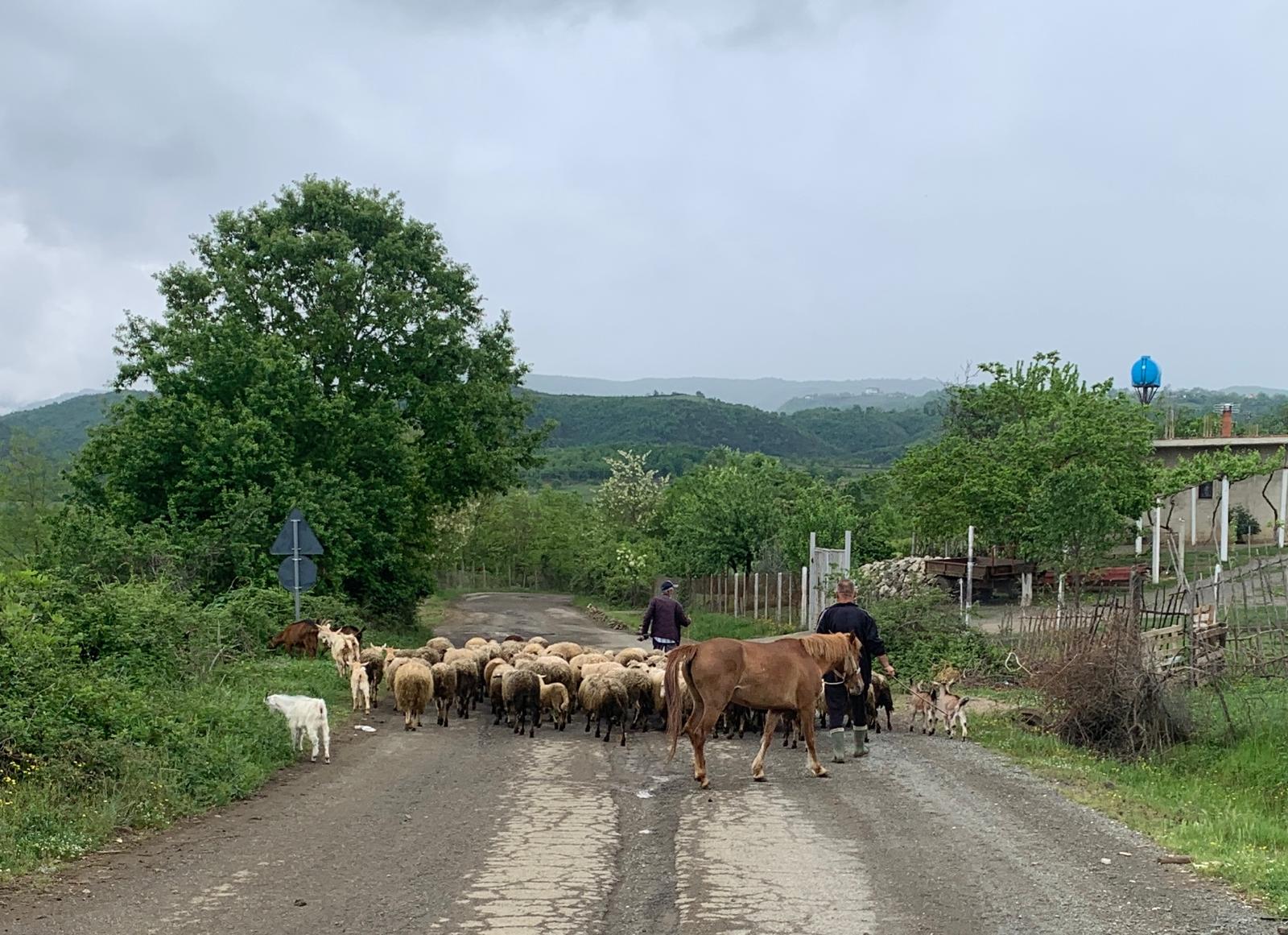Nos routes se séparent avec Anne-Marie qui continue son tour des balkans, alors que nous filons vers l’est pour rejoindre bientôt la Macédoine et la Grèce. C’était un petit trio bien sympa, nous retrouvons notre formation habituelle en duo. L’étape du jour est assez plate, ce qui est plutôt rare dans la région, nous en profitons pour allonger la distance. Nous nous enfonçons dans la campagne profonde, on sent rapidement que le pays n’a pas suivi le même développement que le reste de l’Europe, c’est un des plus pauvre, mais nous sentons aussi que ça évolue. Le très délabré cotoie le rénové ou neuf. Les albanais sont vraiment très chaleureux et accueillants, à part les plus vieux sur leur cannes qui nous dévisagent comme s’ils voyaient des martiens, tous les autres, piétons, cyclistes, automobilistes nous font des signes, nous disent bonjour, nous encouragent. Ils engagent spontanément la conversation dans un bon anglais et sont contents de nous voir. J’ai même fait la papote en roulant avec des gamins sur leur vélos, une dizaine d’année et ils se débrouillaient déjà bien en anglais. Je leur ai demandé de m’apprendre quelques mots de leur langue pas facile, que notre Google translate ne maîtrise pas bien … Je sens que vais adorer ce pays. Par contre, côté gestion des déchets ce n’est pas mieux que les pays voisins. Curieusement nous voyons plus souvent des bennes à ordure, mais elles ne doivent pas être souvent vidées, ou alors les albanais ont du mal à viser dedans, car ça ressemble toujours à une décharge, en plus de toutes les décharges sauvages.