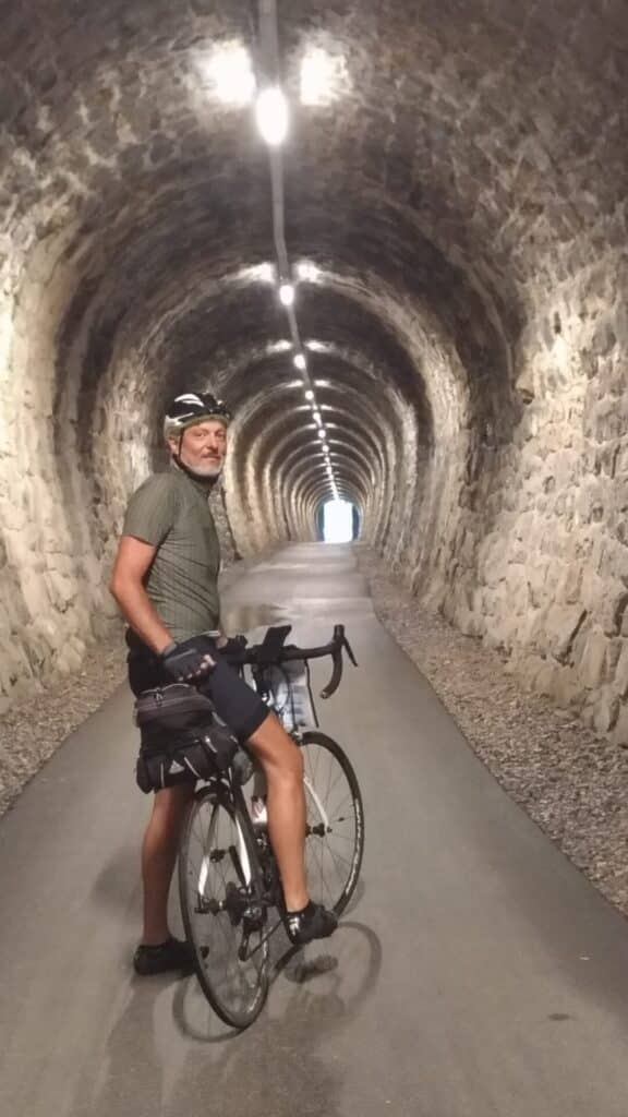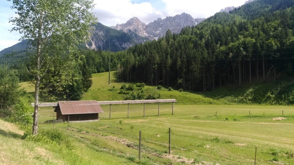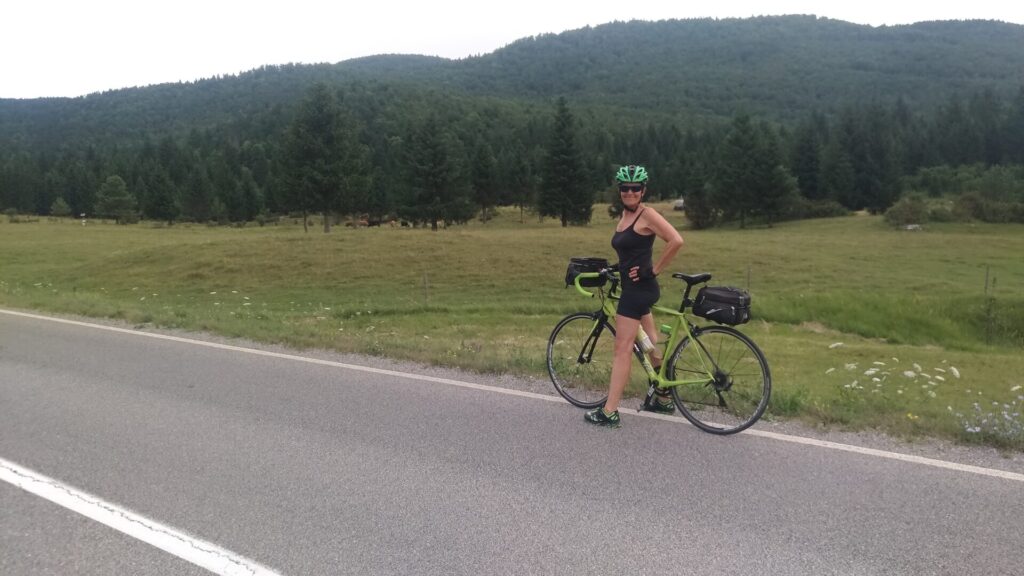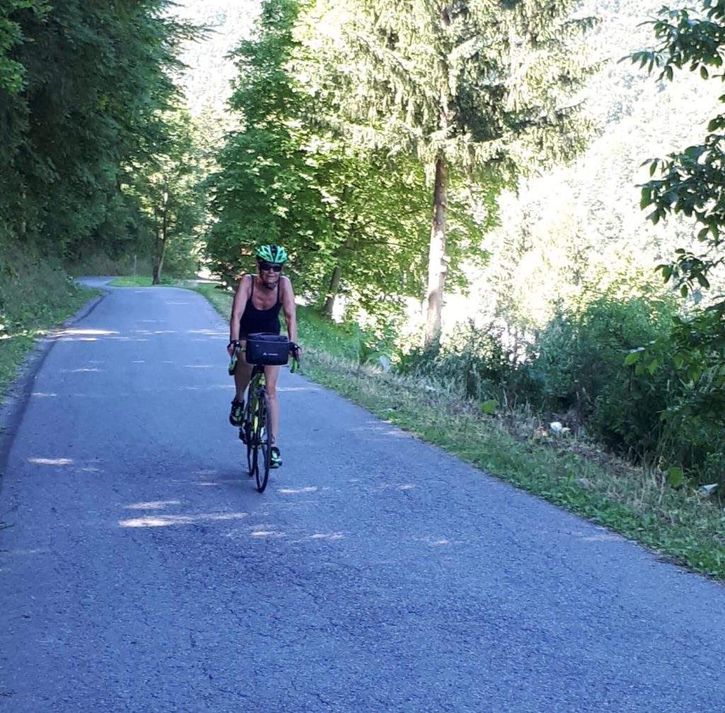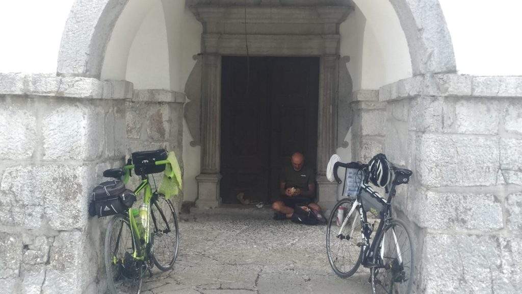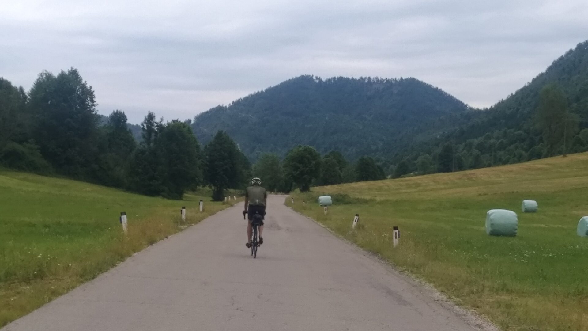 Nous sommes en vélo léger, avec une petite sacoche de 3 kg environ. Tous les hébergements sont réservés à l’avance, il ne faut donc pas de grain de sable dans notre parcours pour éviter un problème en cascade. Après une première nuit à Nova Gorica, nous nous dirigeons vers le nord, en direction des Alpes juliennes. 2 km après le départ nous attaquons un premier col assez raide, on est vite dans l’ambiance.