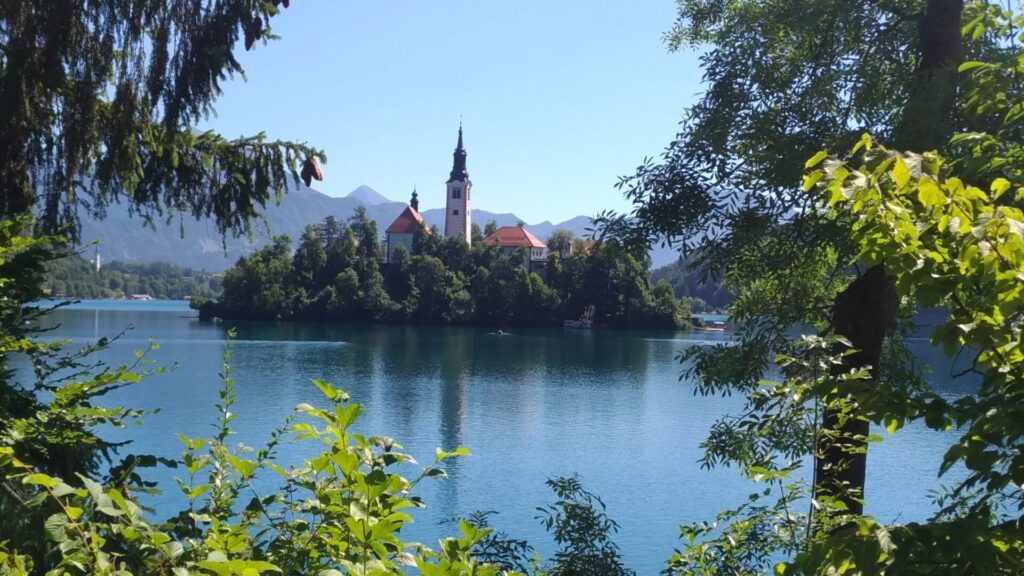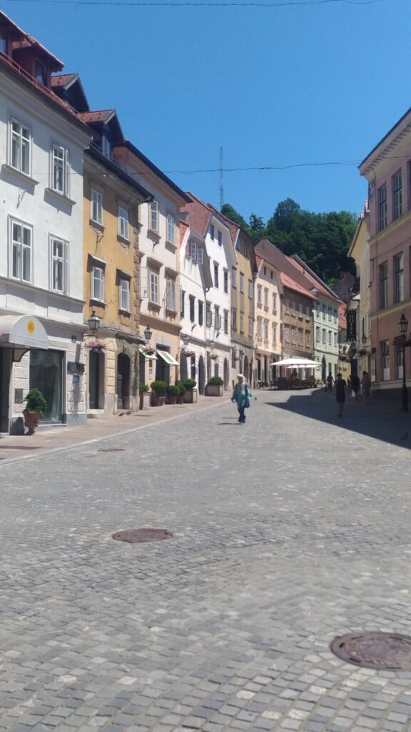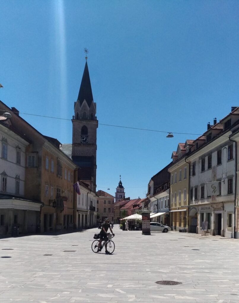 Prochain objectif, la capitale Lubjana, nous avançons bien car en moyenne nous continuons de descendre. Nous passons à Kranj une jolie ville avant Lubjana où nous pique-niquons au pied d’une église avec une belle vue sur la vallée.