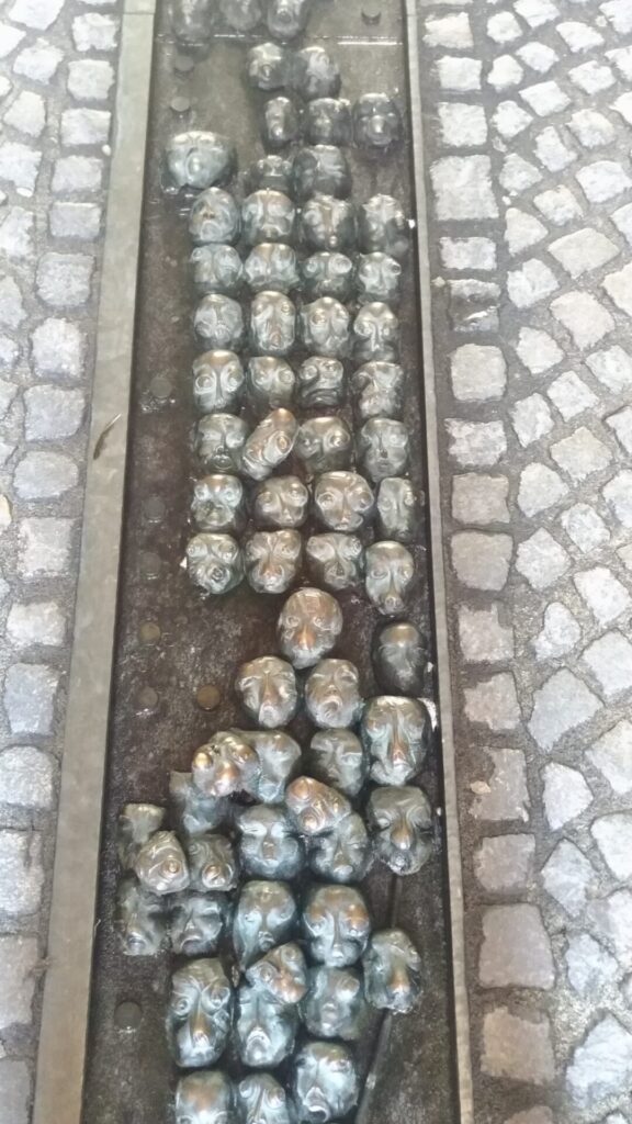 Dans la rue Ključavničarska (répétez le 3 fois de suite) L’artiste Jakob Brdar a fait une oeuvre curieuse. Partant d’une fontaine, environ 700 têtes de bronze avec des expressions différentes sont disséminées dans le caniveau central. Son inspiration viendrait de la mythologie grecque. On fait la visite du château qui domine la ville, puis la cathédrale et le musée. Au passage on se gave de fraises et de cerises au marché. Il fait bien chaud, on frise les 35 °C. On a droit également à une visite gratuite de la ville le soir par une étudiante. C’est organisé par l’office du tourisme, très sympa.