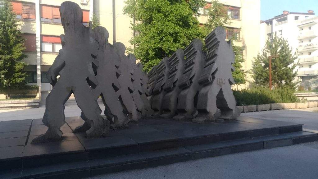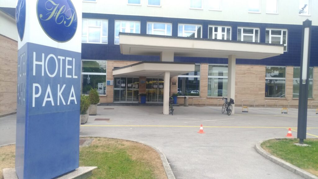 Ljubljana mériterait que l’on y revienne une autre fois plus longtemps, mais nous devons repartir en direction de Velenje. Difficile d’éviter les grands axes dans ce coin, donc on trace. 92 km plus tard on arrive dans une ville modèle soviétique, c’est la seule de ce style que l’on traversera. Le maréchal Tito voulait faire de Velenje, une ville moderne exemplaire. Monuments à la gloire des travailleurs, centre culturel, et aussi curieusement, quelques édifices conçus par Le Corbusier. Notre hôtel est un bloc de béton, pas vraiment ce qu’on recherche, mais l’ambiance est marrante.