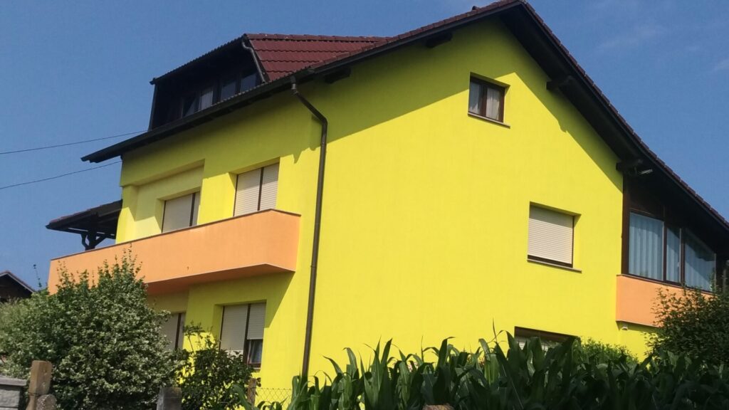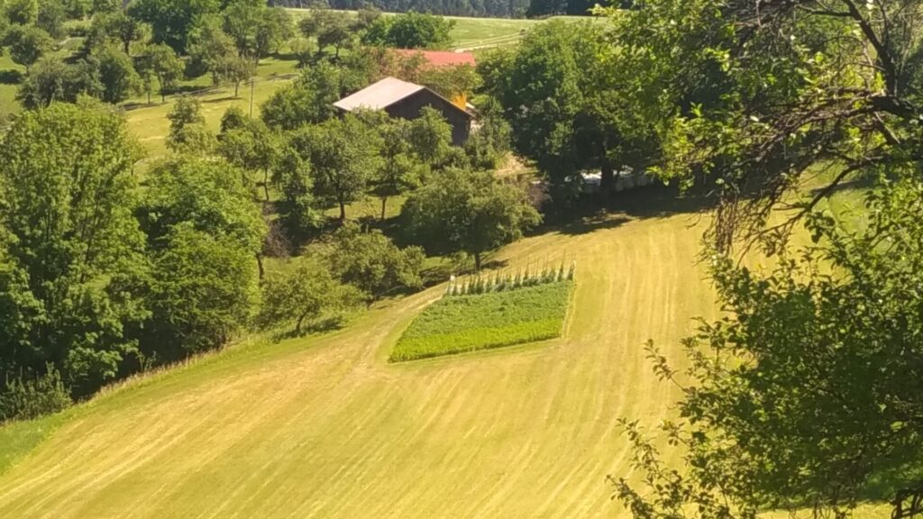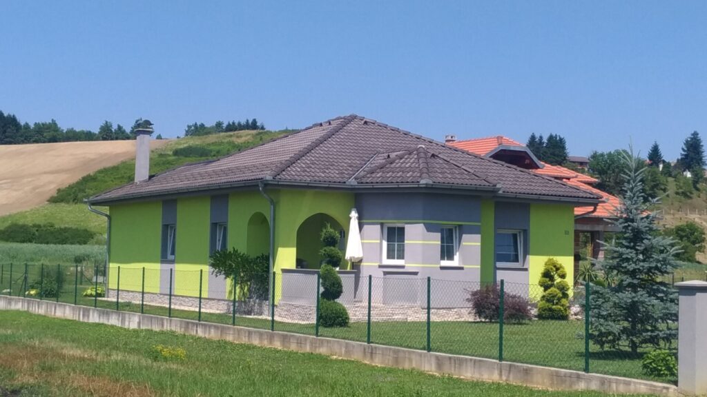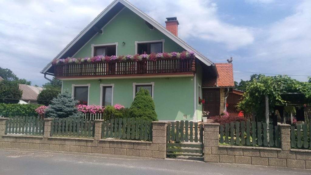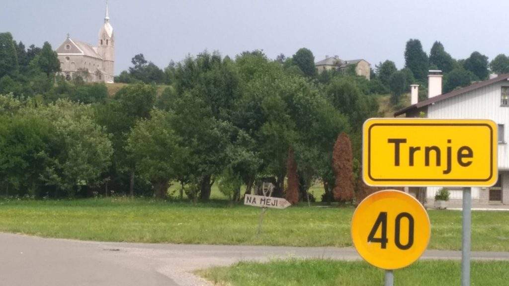 Le lendemain on a droit à un méga petit déjeuner (en compensation ?). On en profite pour faire les sandwitches de midi et on part à la fraiche. Pour le déjeuner on trouve un porche d’église « climatisé ». Etape du soir à Trnje (prononcer Tornié) dans un B&B, le seul qu’on ait trouvé en Slovénie, dommage car c’est toujours sympa de discuter avec les gens du coin.