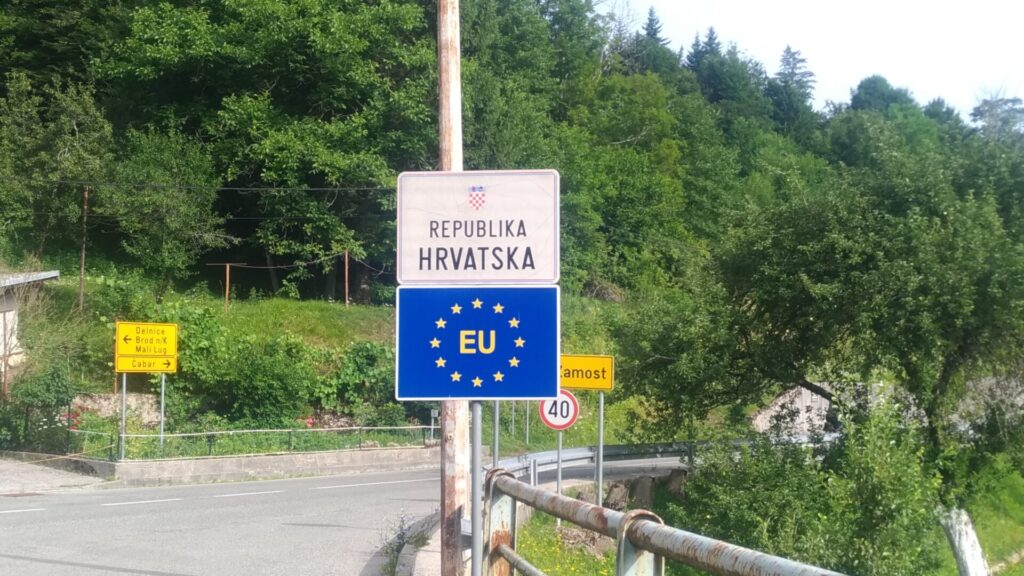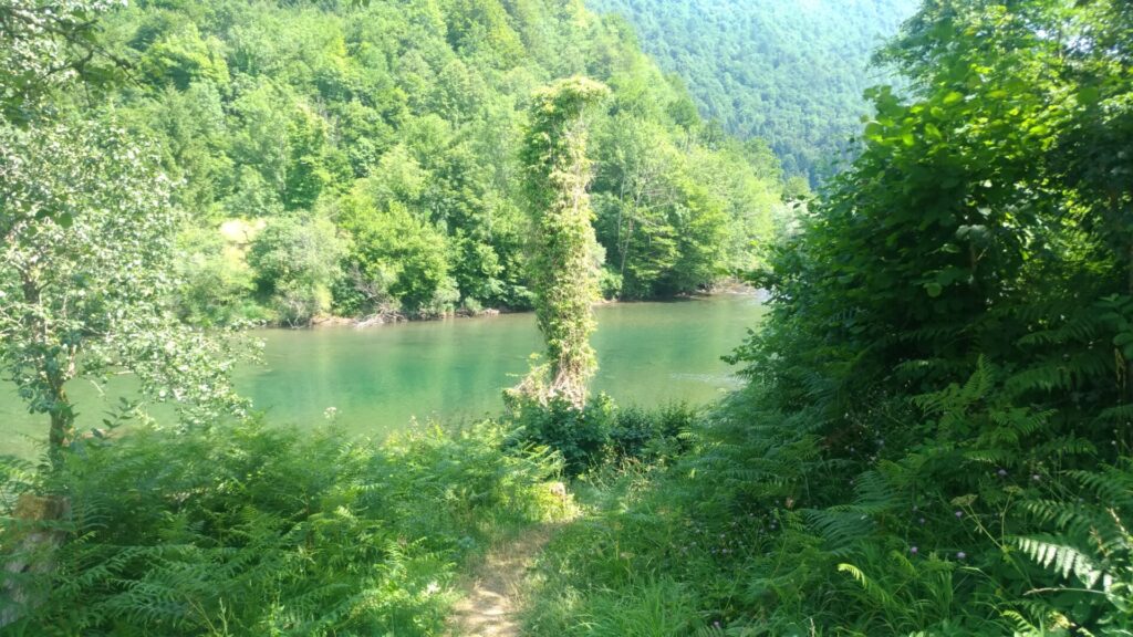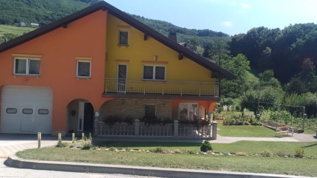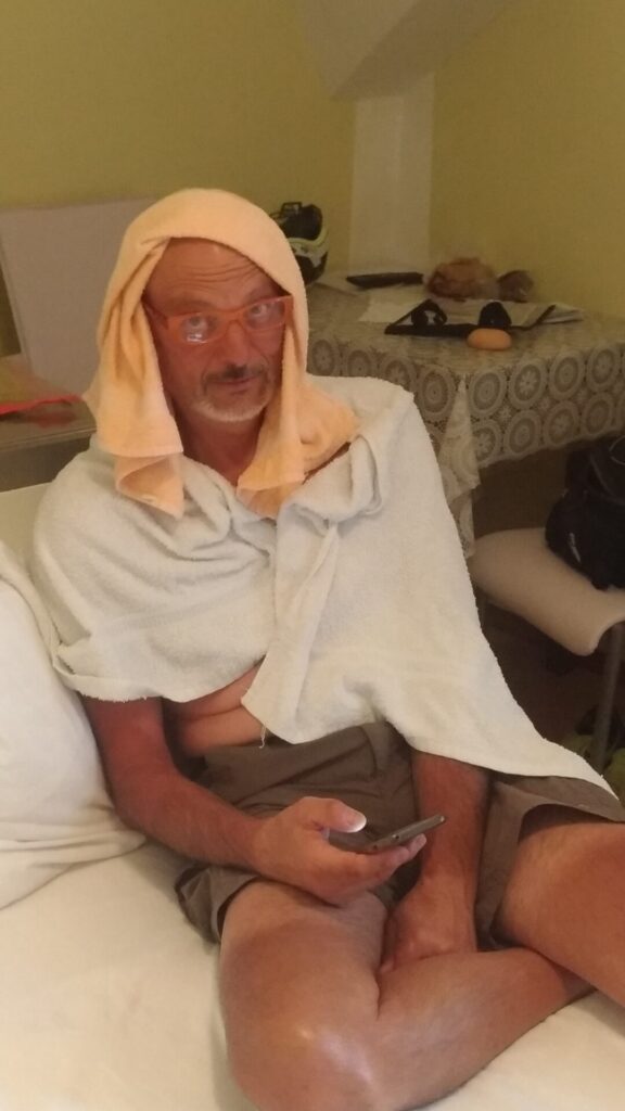 Nous comprenons tardivement que La Croatie se dit Hrvatska en croate. Nous arrivons à Osilnica après une longue et très chaude journée de 100 km et 1400 m de dénivelée. Notre hôtel a été transformé en centre de vacances, il y a une bonne soixantaine d’ados. A partir de 9h la sono se met en route à fond, mais vraiment à fond. Je vais voir la dame de l’hôtel pour lui demander à quelle heure c’est censé s’arrêter. Elle n’a pas trop l’air de maîtriser la situation. Pour limiter le bruit nous déménageons nos matelas dans la pièce la plus loin de la sono. Nous atterrissons dans la pièce prévue pour le hammam et les massages. A minuit ça m’énerve, je vais retrouver la dame qui finit par me passer le patron au téléphone. Pas content, je lui dis qu’on ne va pas payer notre nuit. Hop, 5mn plus tard, c’est fini on va pouvoir dormir.