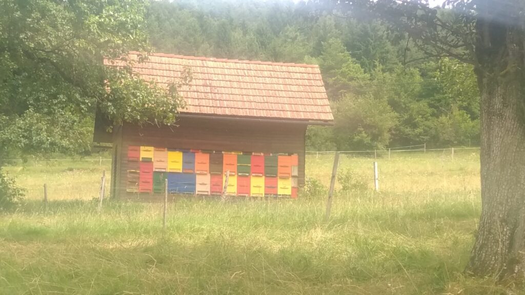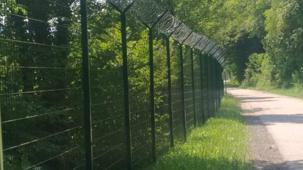 Nous dormons à Novo Mesto, encore une très jolie ville, mais nous n’avons pas pris de photo ! Cette fois, nous sommes dans une sorte d’auberge de jeunesse, mais c’est vide car tout le monde est en Croatie pour le week-end. Ensuite nous allons longer la frontière avec la Croatie, le long d’une petite rivière pour rejoindre un tout petit village Osilnica. Cette fois la fontière est barrée par un mur grillagé avec des barbelés. C’est récent, pour empêcher les migrants de rentrer en Europe …