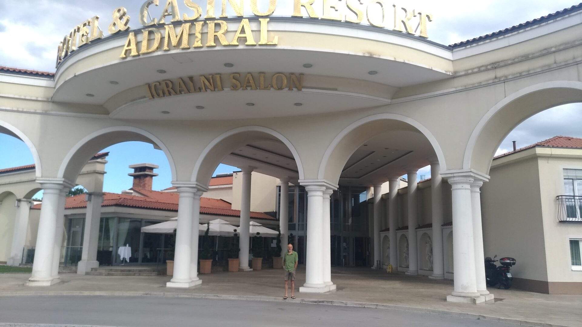 Nos hotes de Trnje sont très accueillants. J’en profite pour leur faire part de mon inquiétude pour le trajet du lendemain. Je crains que la frontière pour la Croatie ne soit fermée car j’ai prévu de passer par une toute petite piste. Vu les barbelés que l’on aperçoit depuis quelques jours le long de la frontière, je crains que seuls les gros postes de douane soient ouverts. Pour m’aider le monsieur appelle son fils qui travaille à la police et lance son réseau pour essayer d’obtenir la réponse. La question a du faire le tour du village. Au final, pas de certitude mais le plus probable est qu’elle soit fermée. Dommage notre prochain gite est en Croatie à Buzet. La route alternative ne passe pas très loin de la frontière visée, on décide d’aller voir sur place. Départ le matin avec les encouragements de nos amis Trnjiens (?!?). On arrive au niveau de la piste, je décide de partir devant car elle est en descente, pas besoin de remonter tous les deux. Au bout de quelques kms j’arrive devant une belle porte avec une chaine et un cadenas. Je vérifie quand même si le cadenas est bien fermé … J’envisage de passer les vélos par dessus mais avec les barbelés, ce n’est pas gagné, et ça ne plaira pas du tout à Doum. Donc demi tour, pour le plan B qui passe par une grosse route pleine de camions. Et le plus marrant est l’hôtel qu’on a trouvé à Kozina. Il y a un vrai casino attenant. Les gens viennent de tous les pays pour aller y dépenser leur économies. Par curiosité on y va. En fait c’est un peu triste, car tout est automatisé, même le black jack et la roulette, plus de « faites vos jeux, rien ne va plus », il n’y a pas d’ambiance.