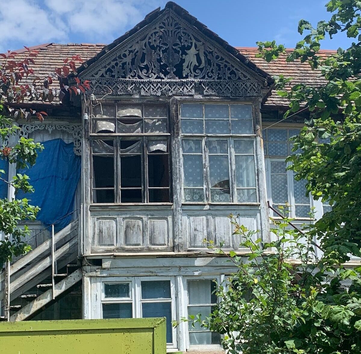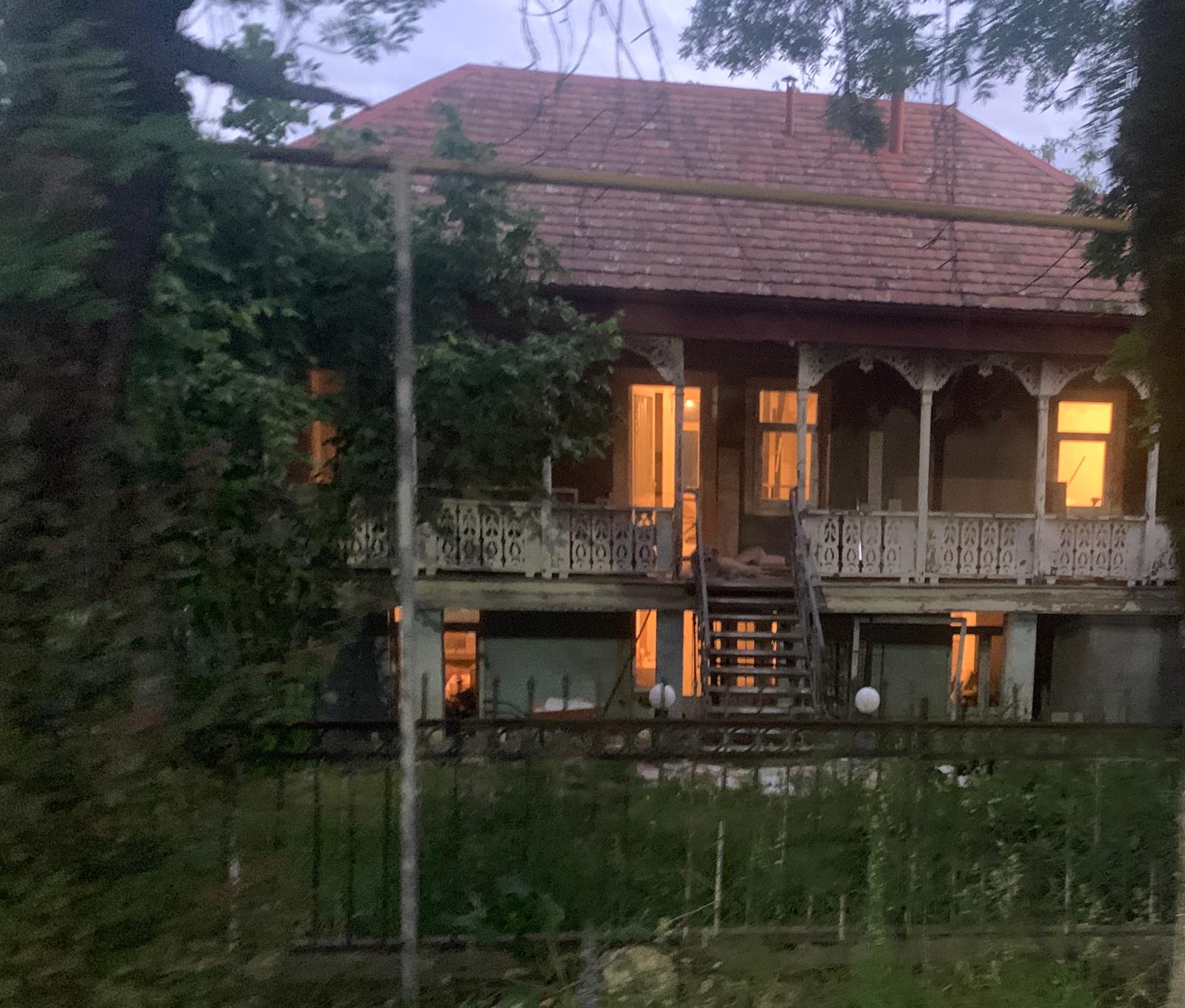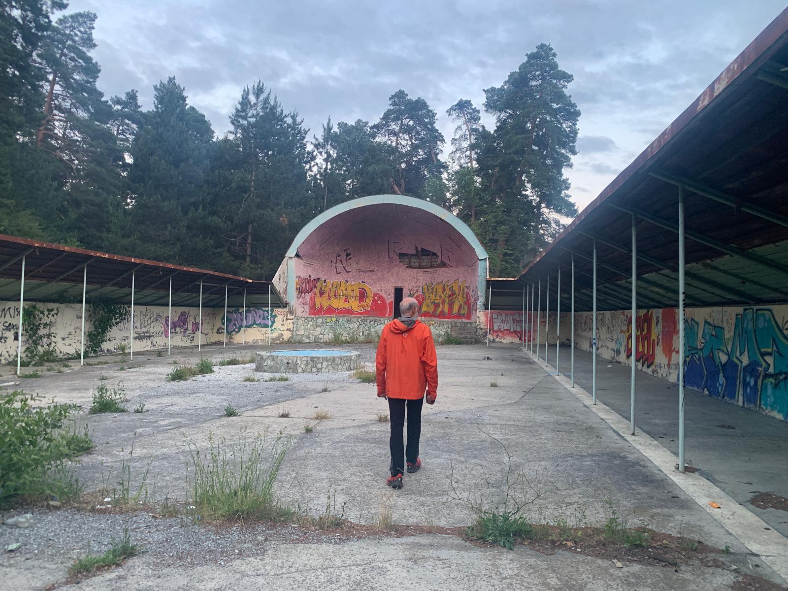 Nous explorons un peu les environs, c’est vraiment étrange, nous voyons bien que ce lieu a été exploité. Dans le parc, il y a des aménagements, des jeux, même une scène pour des spectacles, mais tout est abandonné, délabré. Le prolongement de notre rue est intéressant aussi. La plupart des maisons sont dans le même état d’abandon et de ruine, pourtant une bonne partie sont encore habitées. Au milieu, quelques maisons récentes en bon état et aussi des petits immeubles dont la construction a été interrompue. Que s’est-il passé ici ? Pas trouvé la réponse sur internet. Ces maisons ont l’air d’être des datchas russes, peut-être était-ce un lieu de villégiature soviétique, abandonné.