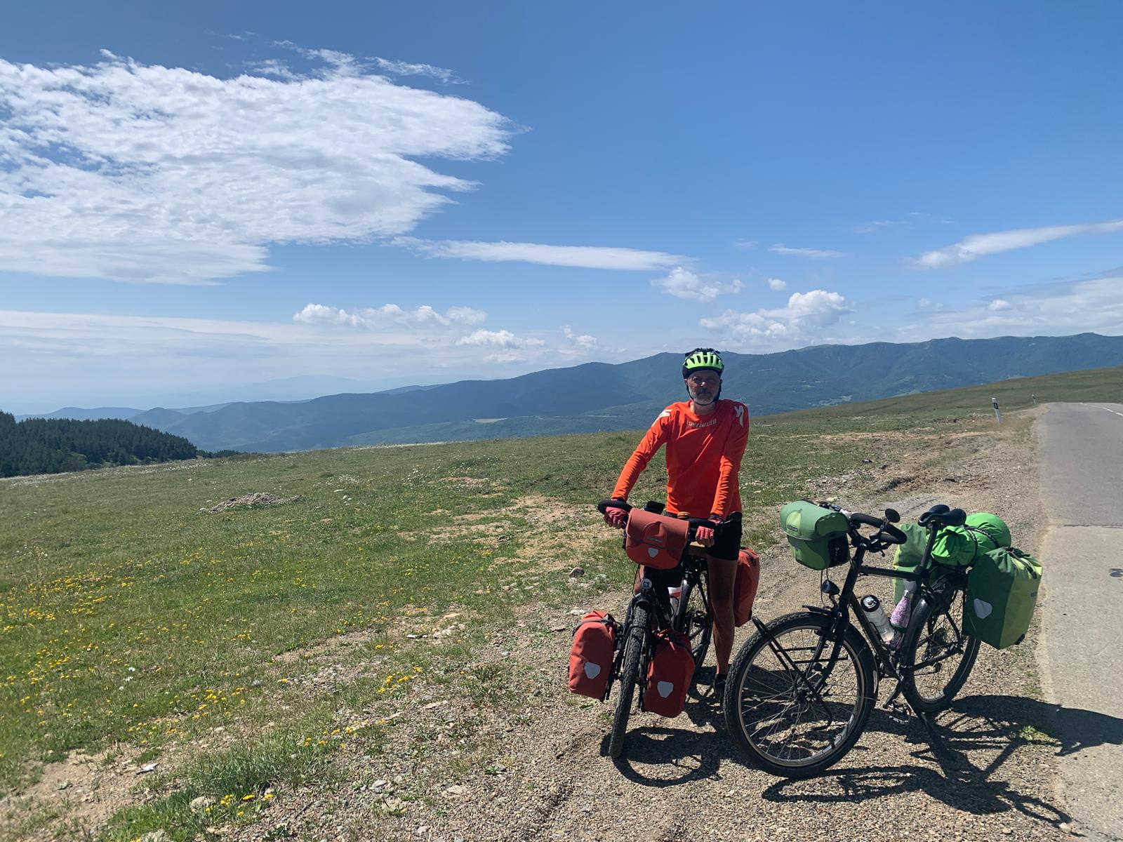 Nous avons choisi des vélos de voyages rustiques et robustes en acier, 16 kg à vide. Doum a 15 kg de bagage et moi 22 kg auxquels ils faut ajouter la bouffe du jour. Mais nous avons des rapports de vitesses très démultipliés qui nous permettent de franchir tous les cols, mais tranquillement en prenant le temps. Quant à moi Hervé 😄, j’ai 4 sacoches plus une de guidon, un sac à l’arrière et une sacoche d’outils. Pour internet, c’est le wifi dans les chambres. Sinon le forfait Free à fonctionné quasiment partout jusqu’en Géorgie. Et maintenant nous utilisons des e-sim, bien pratiques, mais la couverture déjà très moyenne, va se dégrader dans le Pamir.