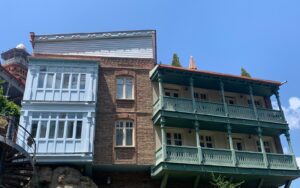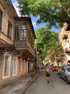 Notre hôtel est très sympa et comme prévu nous échangeons pas mal d’informations avec d’autres voyageurs de tout pays et tout âges. Nous avons du mal à trouver des cartons, la demande semble plus forte que l’offre. Nous avons encore deux jours pour trouver. Nous aimons beaucoup Tbilissi, ville multi culturelle et multi ethnique. Comme ses voisines turques, Tbilissi a été dominée par les turcs, perses, arabes, mongols, russes. Ca se voit au niveau architectural, où se mêlent style russe et ottoman. C’est aussi un joyeux mélange de modernité et de déglingue totale. Certaines bâtisses abîmées par des tremblements de terre sont occupées tardivement, jusqu’à l’effondrement final. De nombreux immeubles autrefois cossus sont en bien mauvais état, mais la ville est très vivante. Il y a beaucoup de verdure, de nombreuses rues sont bordées de grands d’arbres, c’est très agréable. Au niveau de la population une dizaine groupes ethniques se cotoient : géorgiens, arméniens, russes, kurdes, azéris pour les principaux.