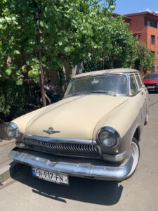 Oui c’est vrai, en Géorgie on passe dans la zone d’influence russe, passée ou non. Ça change vraiment. Juste un détail on voit des (très) vieux camions, jeep, voitures russes, j’adore !