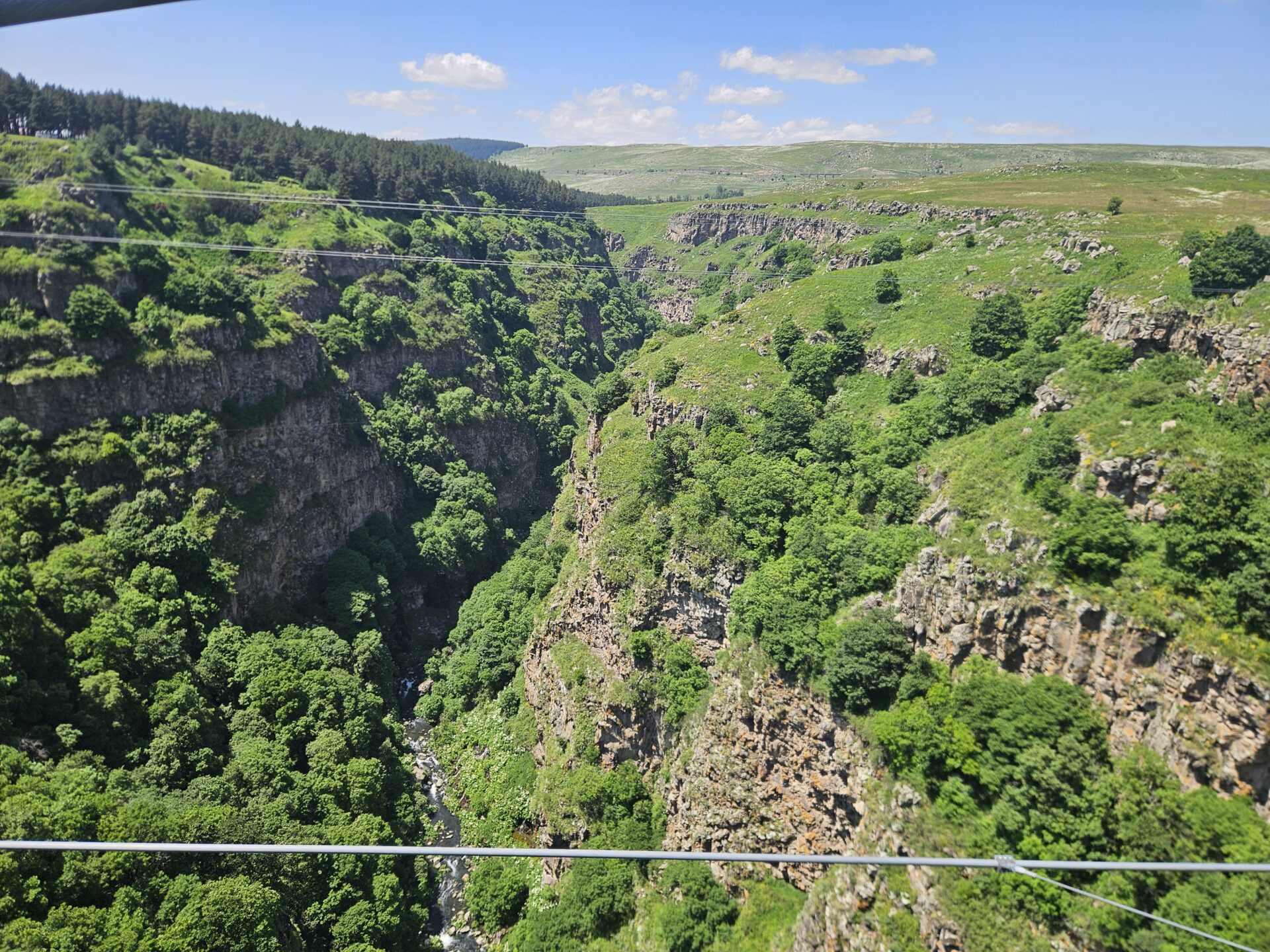 Nous allons visiter le très beau canyon de Tsalka. Le site est exploité pour le tourisme avec un pont et un mirador au milieu du canyon. Nous descendons voir les chutes d’eau tout en bas. Bien sûr, tout ça est payant. Nous faisons donc notre boulot de touriste, nous ne sommes pas seul, la saison démarre doucement.