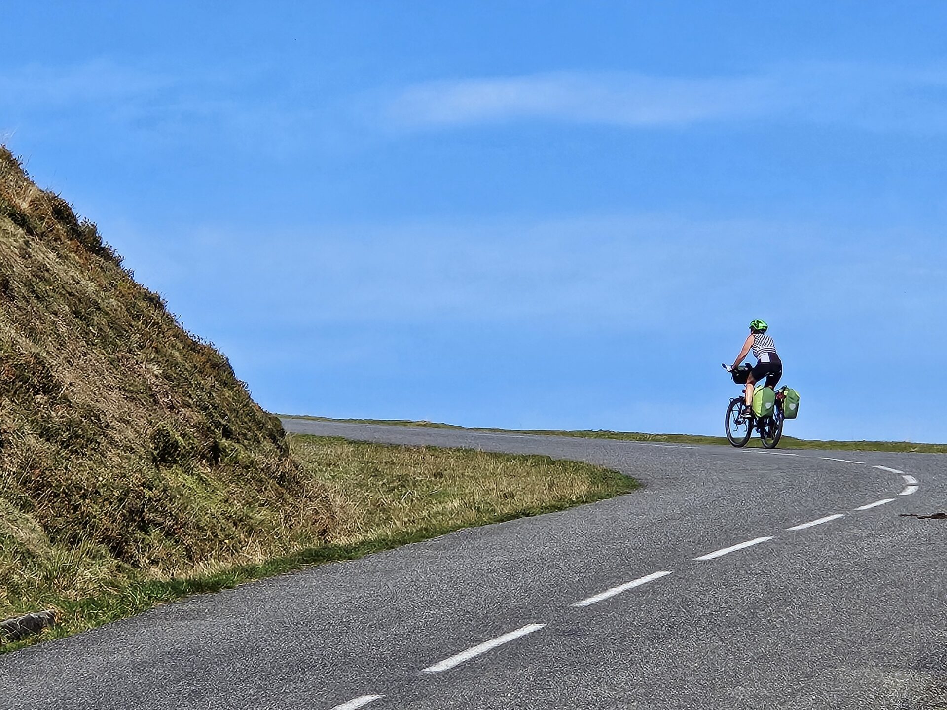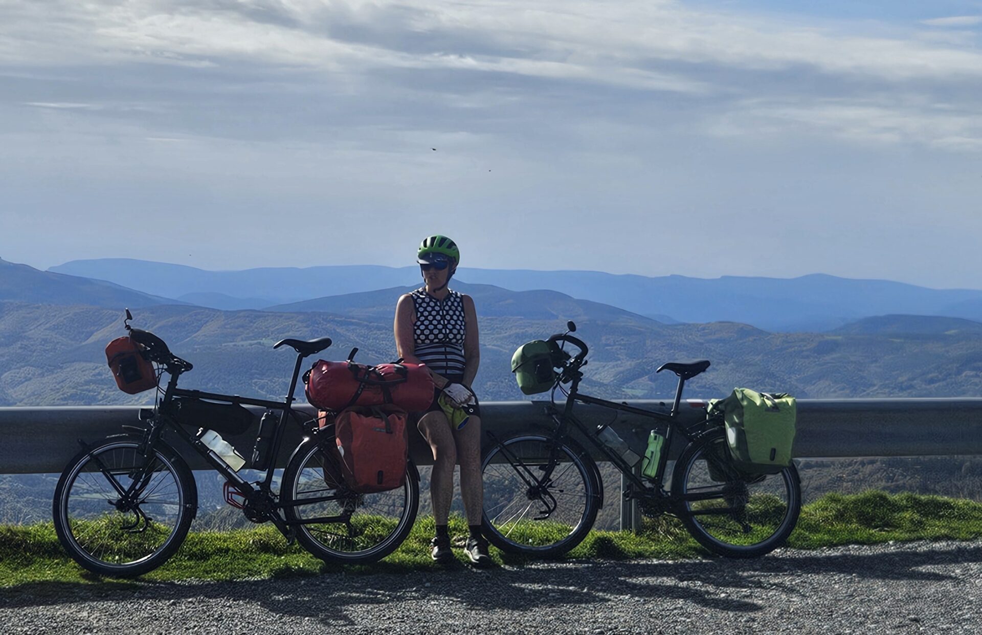 Au départ, je n’aurais pas misé grand chose sur nos chances d’arriver en Espagne, mais nous avons bien fait de tenter le coup puisque nous y voilà. Et le genou va plutôt un peu mieux. Nous avons quand même passé le col en deux jours. 1700 m de dénivelé, ça n’aurait pas été raisonable en une fois, avec un genou pas encore sec. Ce col est bien soutenu, à plus de 10% en moyenne et un petit passage à 16% au col intermédiaire d’Erroimendi avec vent de face !