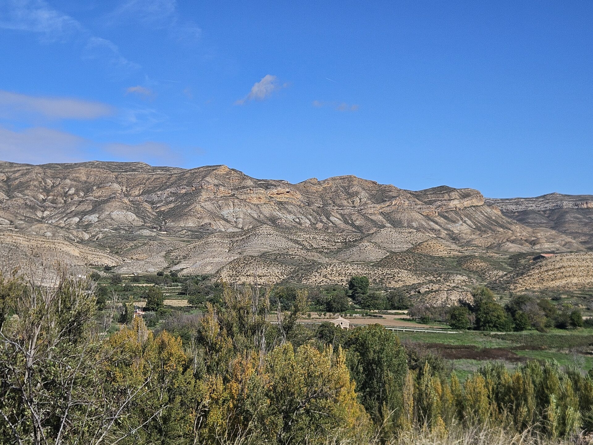 Depuis notre arrivée en Espagne hormis le désert des Bardenas, nous sommes dans une région industrielle agricole, ce n’est pas très beau. Les villages traversés sont souvent moches et sinistres. Même les plus grosses villes sont décevantes, les rues sont très étroites, et un peu tristes, les églises ou cathédrales n’ont aucune perspective, coincées par les maisons juste en face. Je force un peu le trait, mais en général ce n’est pas très folichon. A partir de la vallée du Rio Alhama, nous avons enfin des chouettes paysages ! Du relief, des belles couleurs, des rios encaissés et des belles petites routes qui serpentent comme on les aime. Par contre une constante c’est le vent, et quasiment toujours de face. Pas étonnant qu’il y ait des éoliennes partout.